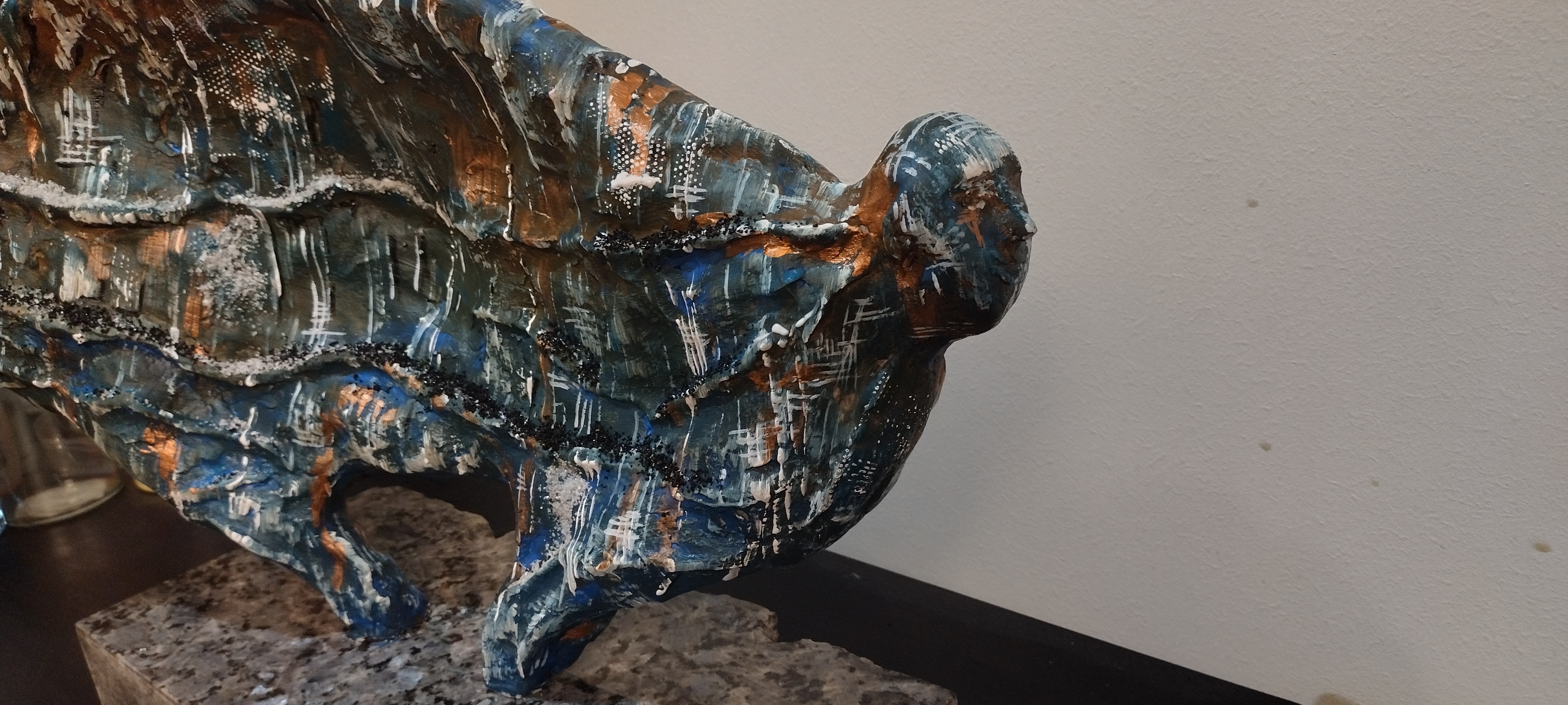 Witam Tym razem prezentuję autorską rzeźbę wykonaną z gliny oraz betonu architektonicznego na postumencie z przepięknego granitu o nazwie "blue pearl" Tytuł "Dualis" Rozmiar 60 cm x 39 cm x 33cm Ze względu naateriał rzeźba jest ciężka,stabilna. Rok: 2024 Sygnowana z boku oraz na spodzie . Zapraszam ************** Dualizm psychofizyczny (łac.dualis) – stanowisko w metafizyce i filozofii umysłu. Według dualistów umysł (mind) i ciało (body) są od siebie całkowicie odrębne i niezależne. Dualizm –pogląd reprezentowany przez wiele religii, doktryn religijnych, herezji czy ideologii, dotyczący natury i pochodzenia dobra i zła istniejącego w świecie. Radykalny dualizm zakłada istnienie dwóch równorzędnych i współodwiecznych sił: „Dobra i Zła”, „Światła i Ciemności”, „Dobrego Boga i Złego Boga”. dualis podwójny) opo- zycyjna i wykluczająca się dwoistość rzeczy, zasad, wartości i poglądów; sta- nowisko filozoficzne, w którym przyjmuje się w strukturze bytu istnienie dwóch przeciwnych pierwiastków, dwóch sprzecznych zasad rządzących świa- tem, dwóch zwalczających się sił: dobra i zła.