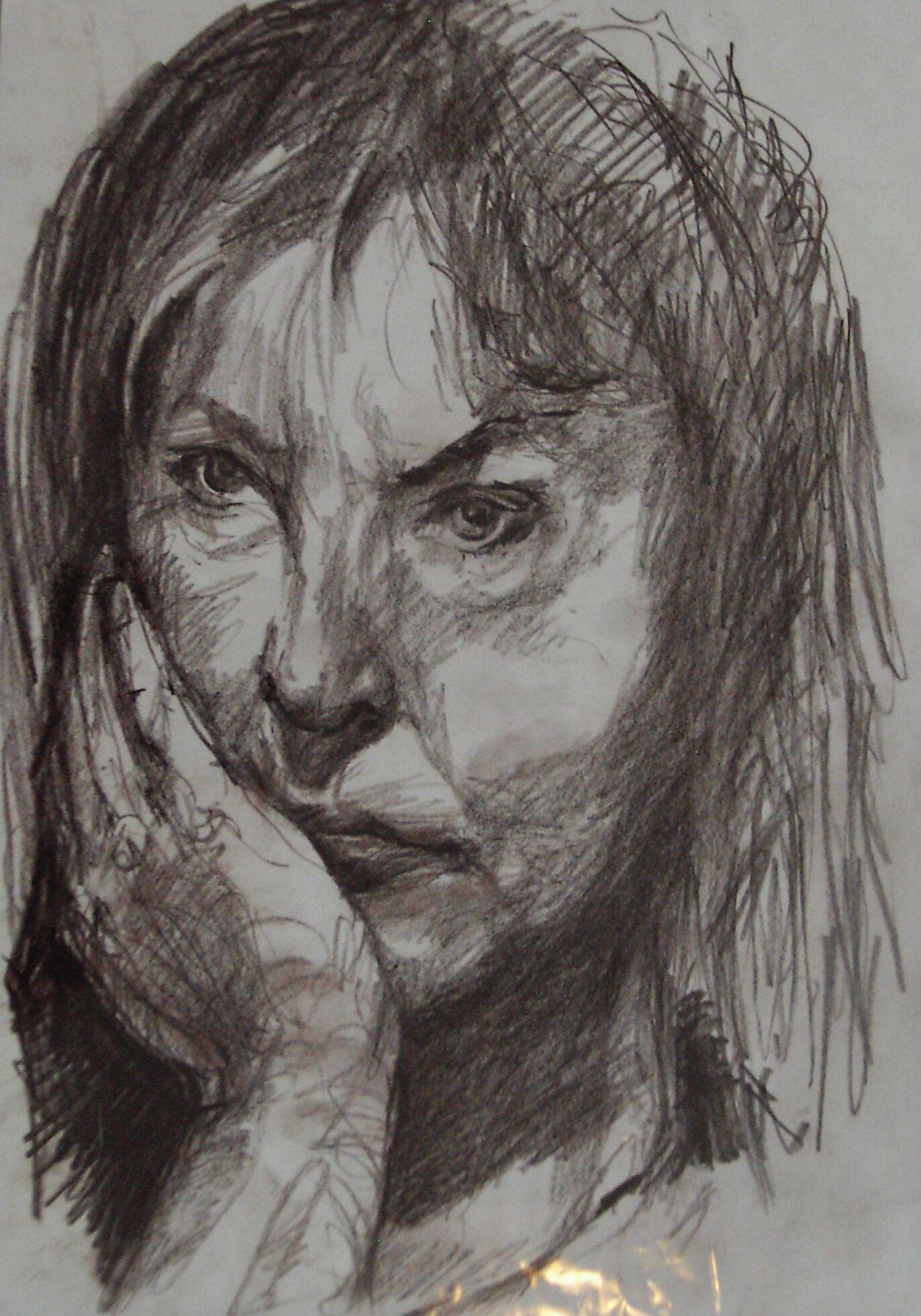 Na przedstawionym obrazie widzimy portret kobiety, wykonany z dużą precyzją za pomocą ołówka. Linie są dynamiczne, a kreski gęsto przeplatają się ze sobą, tworząc skomplikowaną teksturę włosów i konturów twarzy. Dominują odcienie szarości, które dodają pracy tajemniczości. Twarz kobiety jest pełna emocji. Wzrok skupiony, nieco zamyślony. Czyżby rozważała coś ważnego? Atmosfera obrazu jest melancholijna, budzi skojarzenia z chwilami zadumy. Wyczuwalny jest pewien spokój, ale i nuta niepokoju. Artystyczna technika oparta na szkicu daje poczucie niedopowiedzenia, jakby obraz mógł się dalej rozwijać. Obraz intryguje emocjonalnie. Czy to smutek, czy może chwila refleksji? Każdy może interpretować to inaczej. Może przypominać o chwilach, gdy sami zastanawialiśmy się nad losem. Dla siedmiolatka mogłoby się wydawać: “Pani myśli o cukierkach!”. To jest właśnie magic aspect tej pracy. Personalnie, dzieło zachęca do spojrzenia w głąb siebie i zrozumienia swoich uczuć.