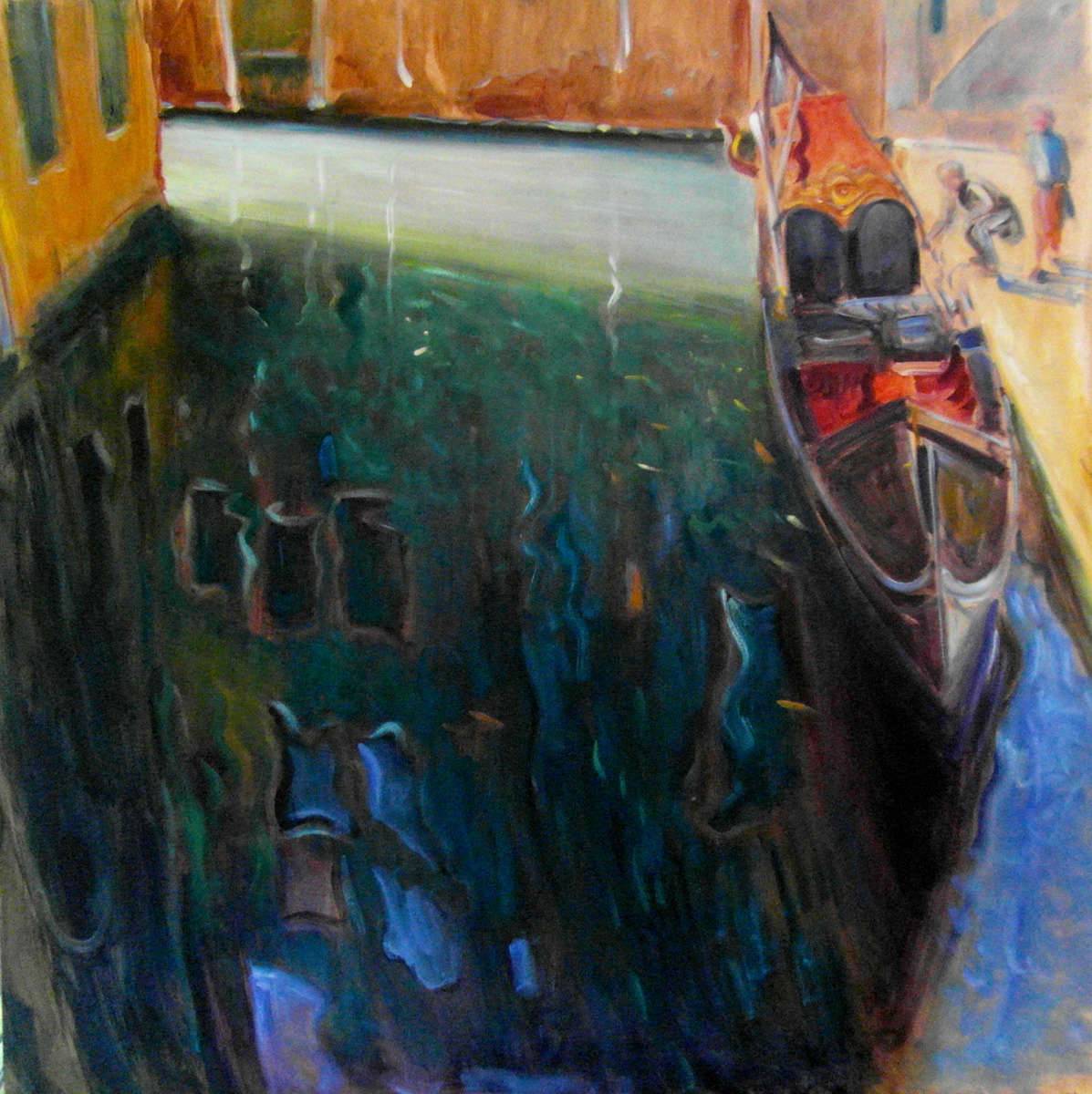 Obraz przedstawia urokliwą scenę z kanałem, przez co niemal czujemy się jakbyśmy unosili się na wodzie w małej gondoli. Intensywne kolory – głębokie odcienie zieleni i błękitu – tworzą barwną mozaikę odbijającą się na wodzie. Ta mieszanina kolorów i kształtów nadaje obrazowi niemal magiczny klimat. Kompozycja jest dynamiczna, z lekko pochyloną gondolą, która przyciąga wzrok na prawą stronę. W tle widzimy spokój zacisznego miasteczka. To takie miejsce, gdzie wszyscy zwalniają i czas płynie wolniej. Atmosfera obrazu jest nostalgiczna. Czuć ciszę i samotność, ale w takim pozytywnym sensie, jakbyśmy mieli chwilę na refleksję. Artysta zastosował miękkie pociągnięcia pędzla i subtelne przejścia między kolorami, co nadaje obrazowi płynność. Moja mama mówi, że woda wygląda jak lustro! Styl przypomina trochę impresjonizm, ale jest w nim coś unikalnego i osobistego. Obraz może wywołać różne emocje. Dla niektórych będzie to spokój i nostalgia, dla innych może tęsknota za podróżami. Każdy, kto przekracza most między rzeczywistością a marzeniami, znajdzie tu coś dla siebie. It's a moment frozen in time. Przypomina nam, że piękno można znaleźć w najspokojniejszych miejscach i chwilach.