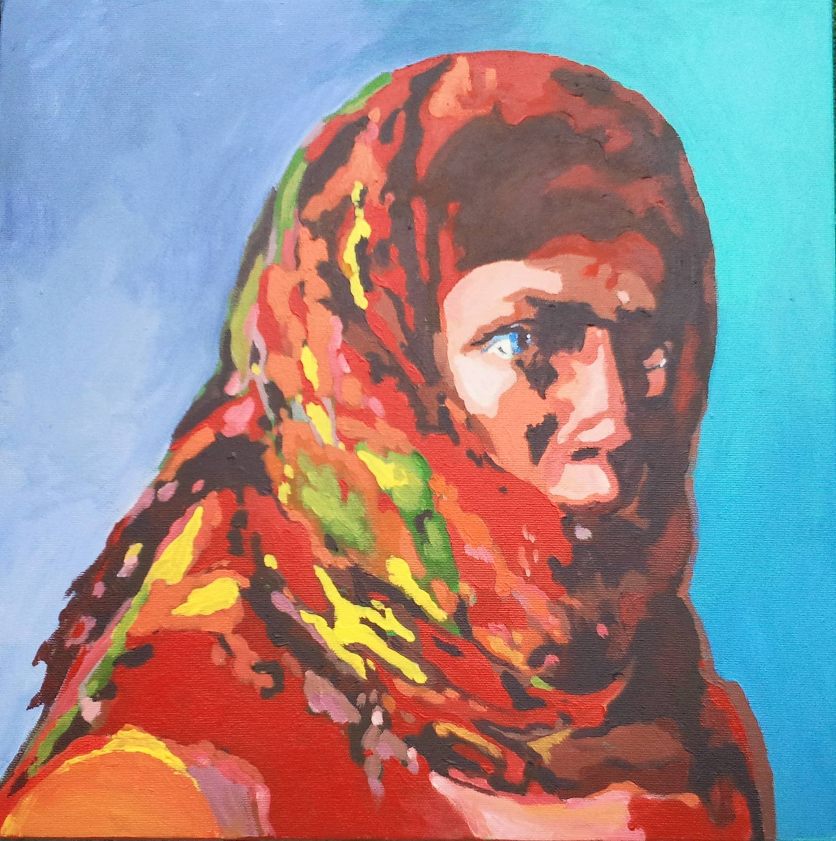 Portret dziewczyny w stylu Popartu, budowa obrazu poprzez dobór kolorystyczny.