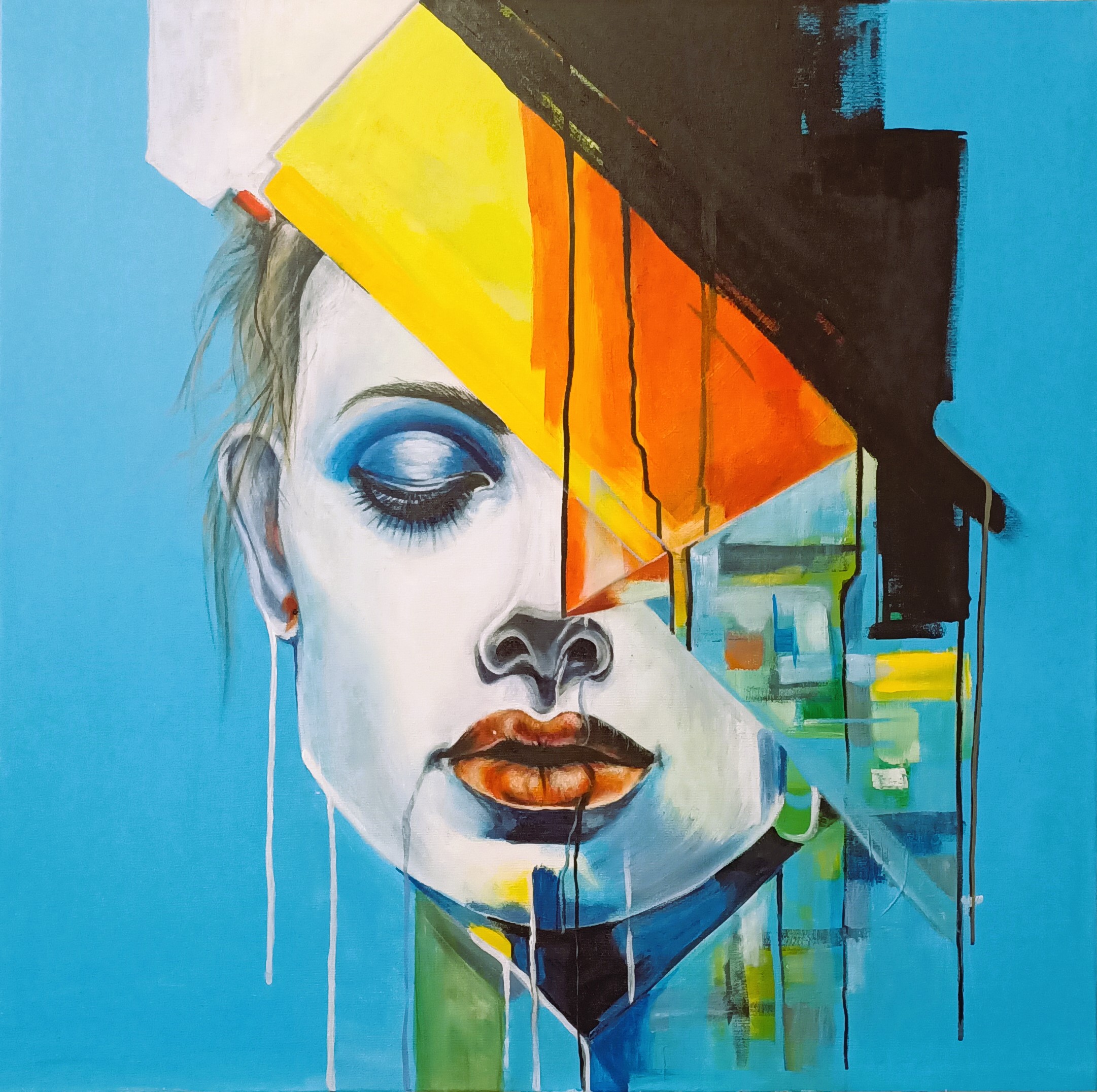 Obraz w stylu współczesnym, techniką akrylową, postać stworzona na poczet formy i barw obrazu .
