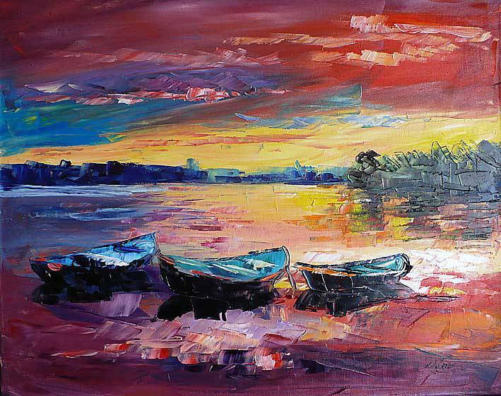 OBRAZ OLEJNY NA PŁÓTNIE NAMALOWANY PĘDZLEM I SZPACHLĄ.