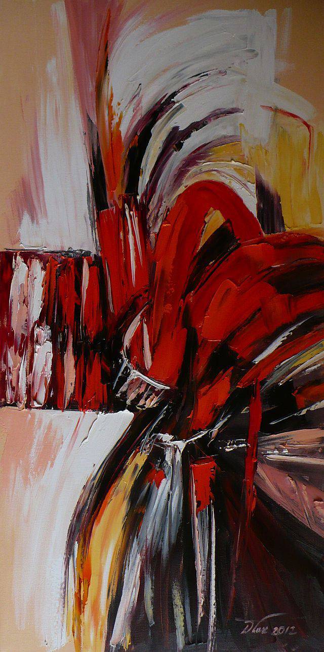 Obraz emanuje intensywnością i energią, która wręcz wylewa się z płótna. Dominują na nim odcienie czerwieni, czerni i bieli, tworząc dynamiczne kontrasty. Linie są poszarpane, niemal jakby artysta chciał uchwycić moment eksplozji emocji. Nastrój obrazu jest pełen namiętności i siły, jak gdyby zapraszał do podjęcia ryzyka. To dzieło na pewno nie pozwala przejść obojętnie. Ruch pędzla zdradza ekspresjonistyczny styl, a technika impasto daje strukturze trójwymiarowy charakter. Wzory, które kreśli, wyglądają jak wirujące tornado kolorów i kształtów. Wow, to wygląda prawie jak płomień! Wzbudza to w odbiorcy mieszankę podziwu i niepokoju. Widać, że artysta chciał pokazać coś ulotnego i gwałtownego. Może chaos życia lub burzę emocji. Elementy obrazu chciałyby krzyczeć „freedom”! Daje to odbiorcy przestrzeń do refleksji nad własnymi uczuciami. Wydaje się, że to coś więcej niż tylko obraz – to zachęta do introspekcji i poszukiwania wewnętrznej siły.