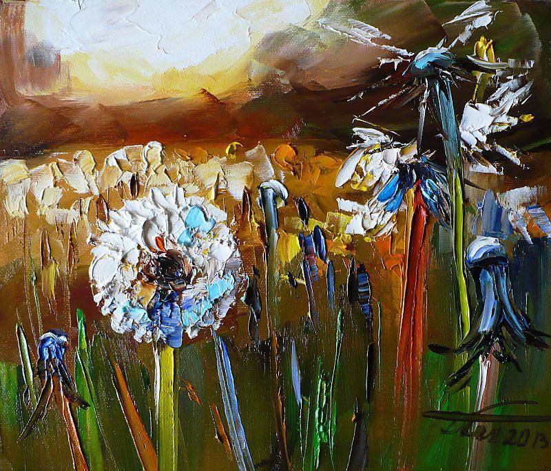 OBRAZ NAMALOWANY NA PŁÓTNIE PĘDZLEM I SZPACHLĄ