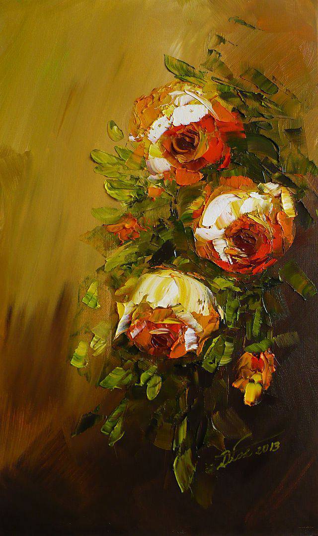 OBRAZ NAMALOWANY NA PŁÓTNIE PĘDZLEM I SZPACHLĄ