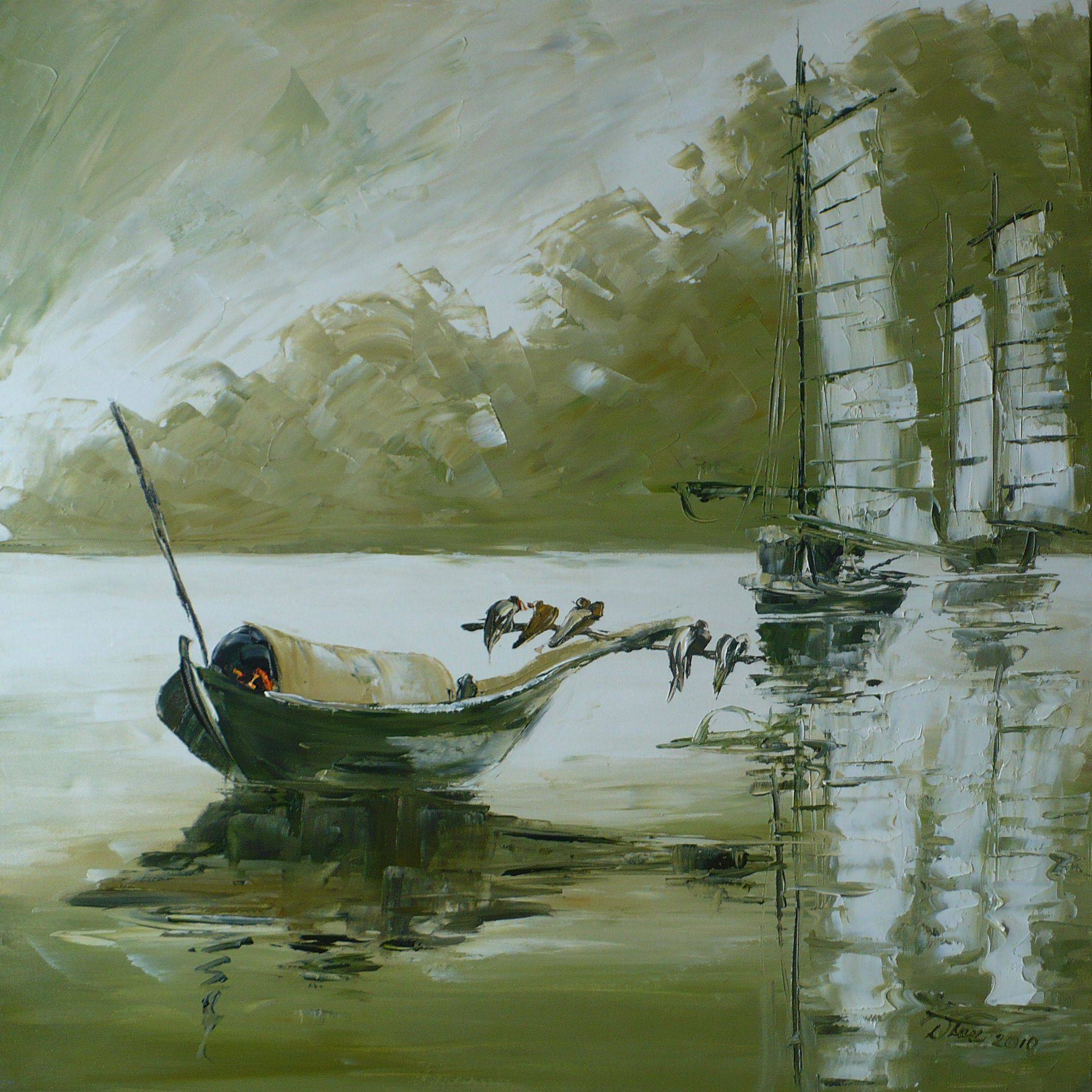 OBRAZ OLEJNY, NAMALOWANY PĘDZLEM I SZPACHLĄ.