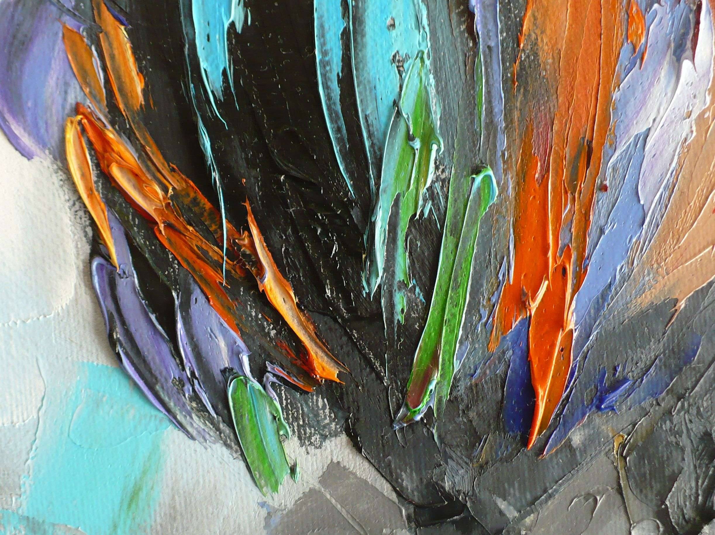 OBRAZ OLEJNY NAMALOWANY PĘDZLEM I SZPACHLĄ, DAJE TO CIEKAWĄ FAKTURĘ