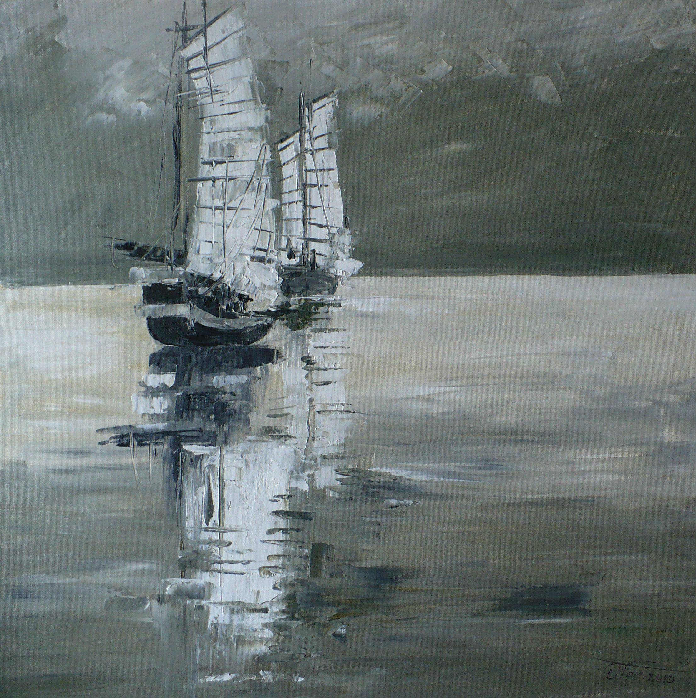 OBRAZ OLEJNY, NAMALOWANY PĘDZLEM I SZPACHLĄ.