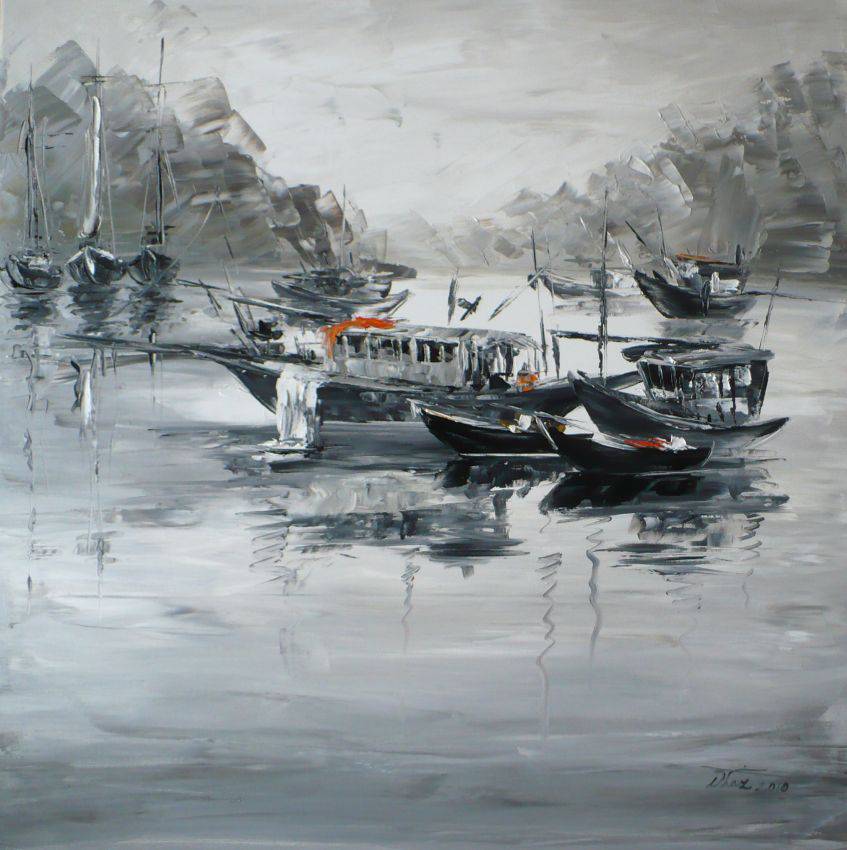OBRAZ OLEJNY, NAMALOWANY PĘDZLEM I SZPACHLĄ.