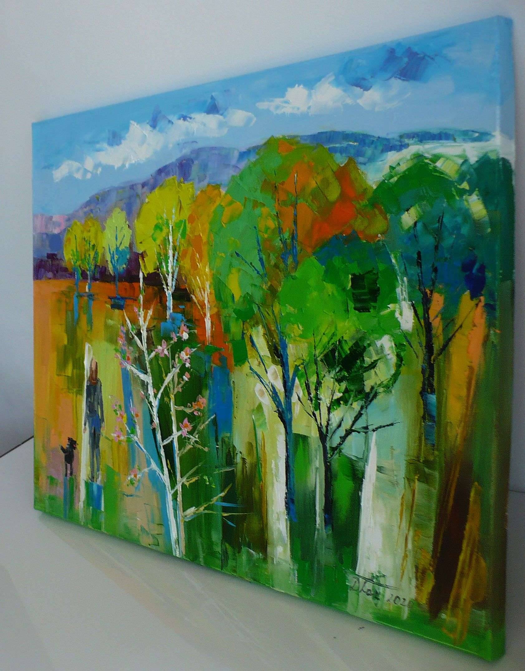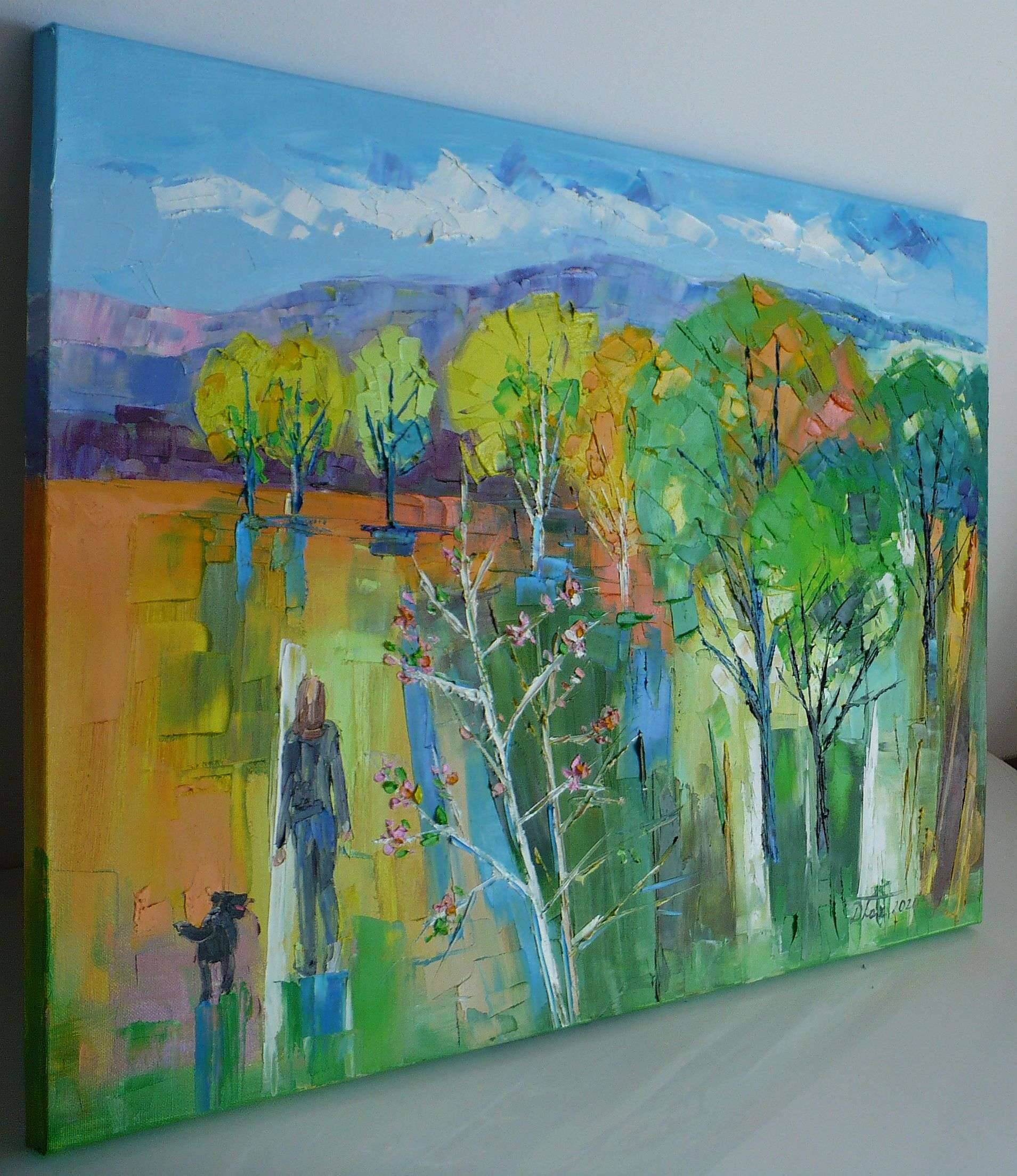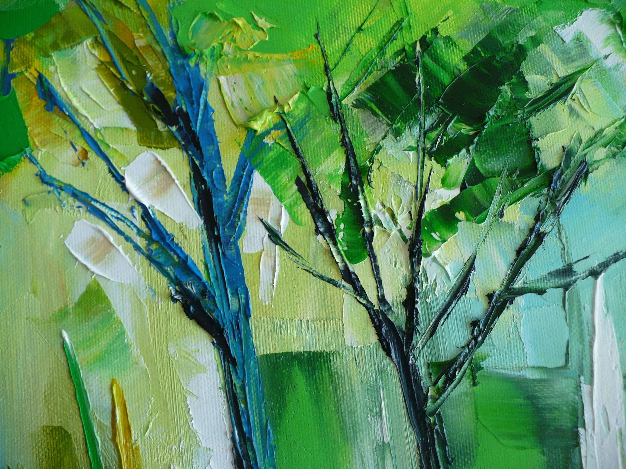 Obraz olejny namalowany na bawełnianym podobraziu pędzlem i szpachla, daje to ciekawą fakturę powierzchni obrazu.