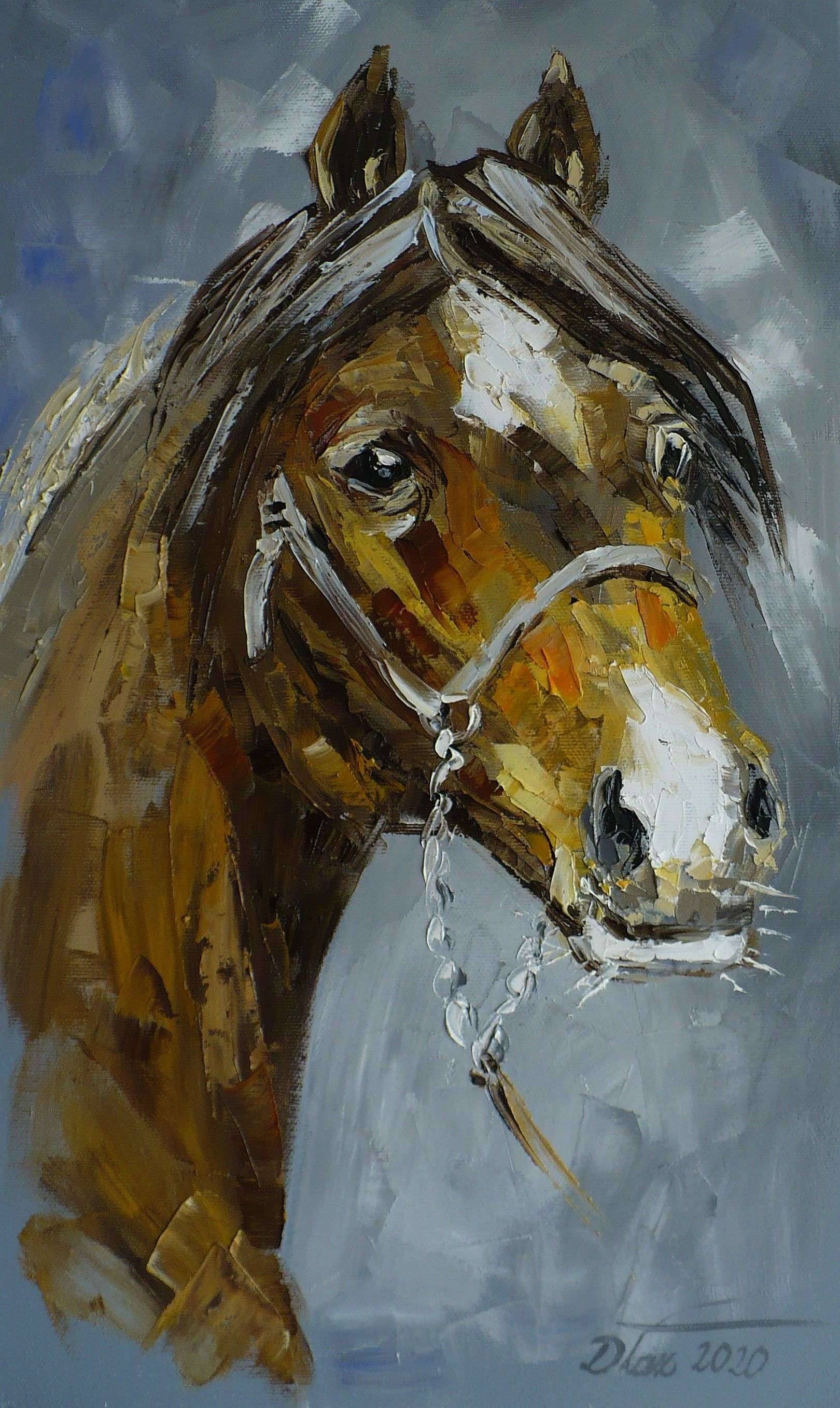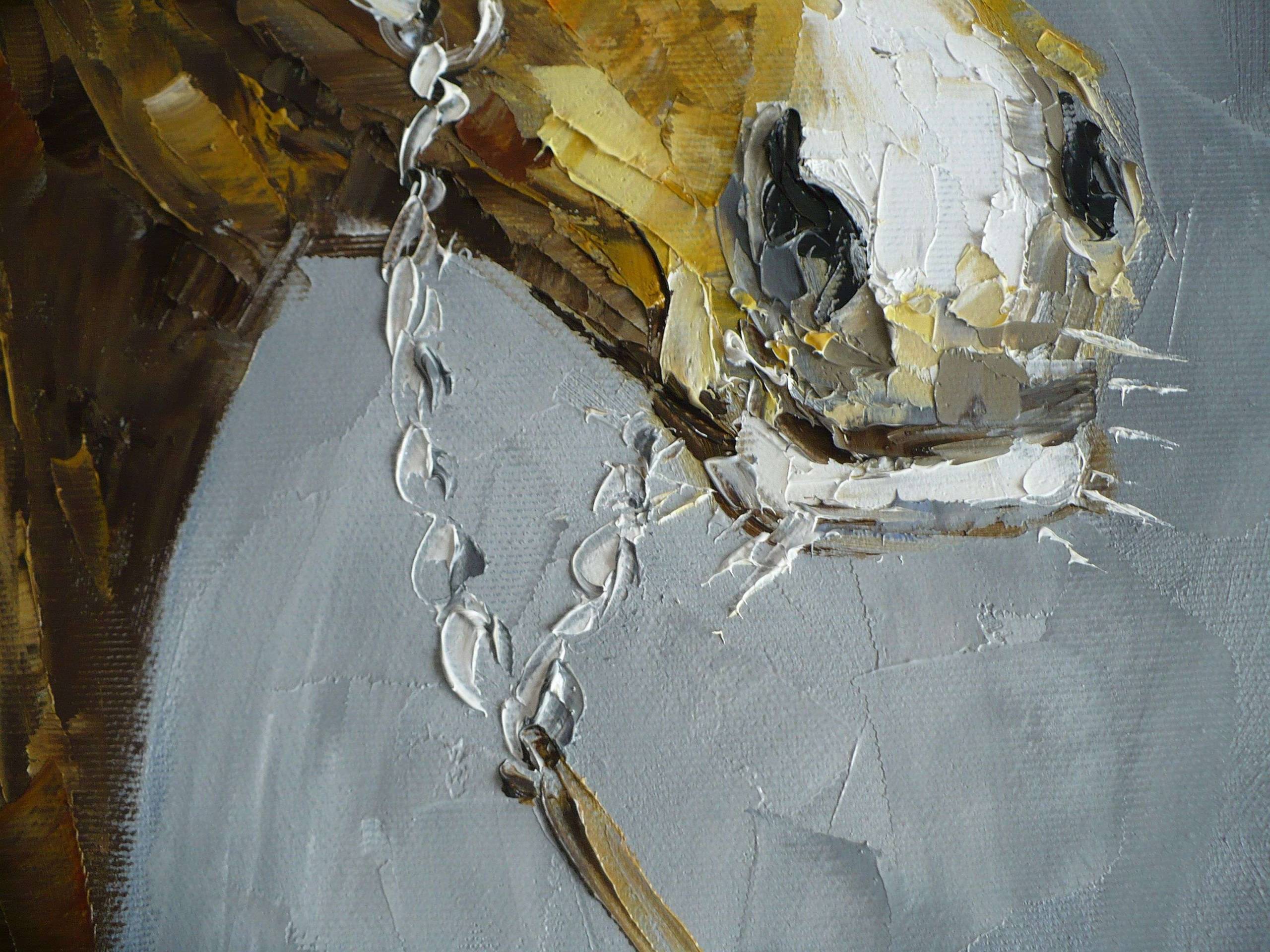 Obraz olejny namalowany na bawełnianym podobraziu pędzlem i szpachla, daje to ciekawą fakturę powierzchni obrazu.
