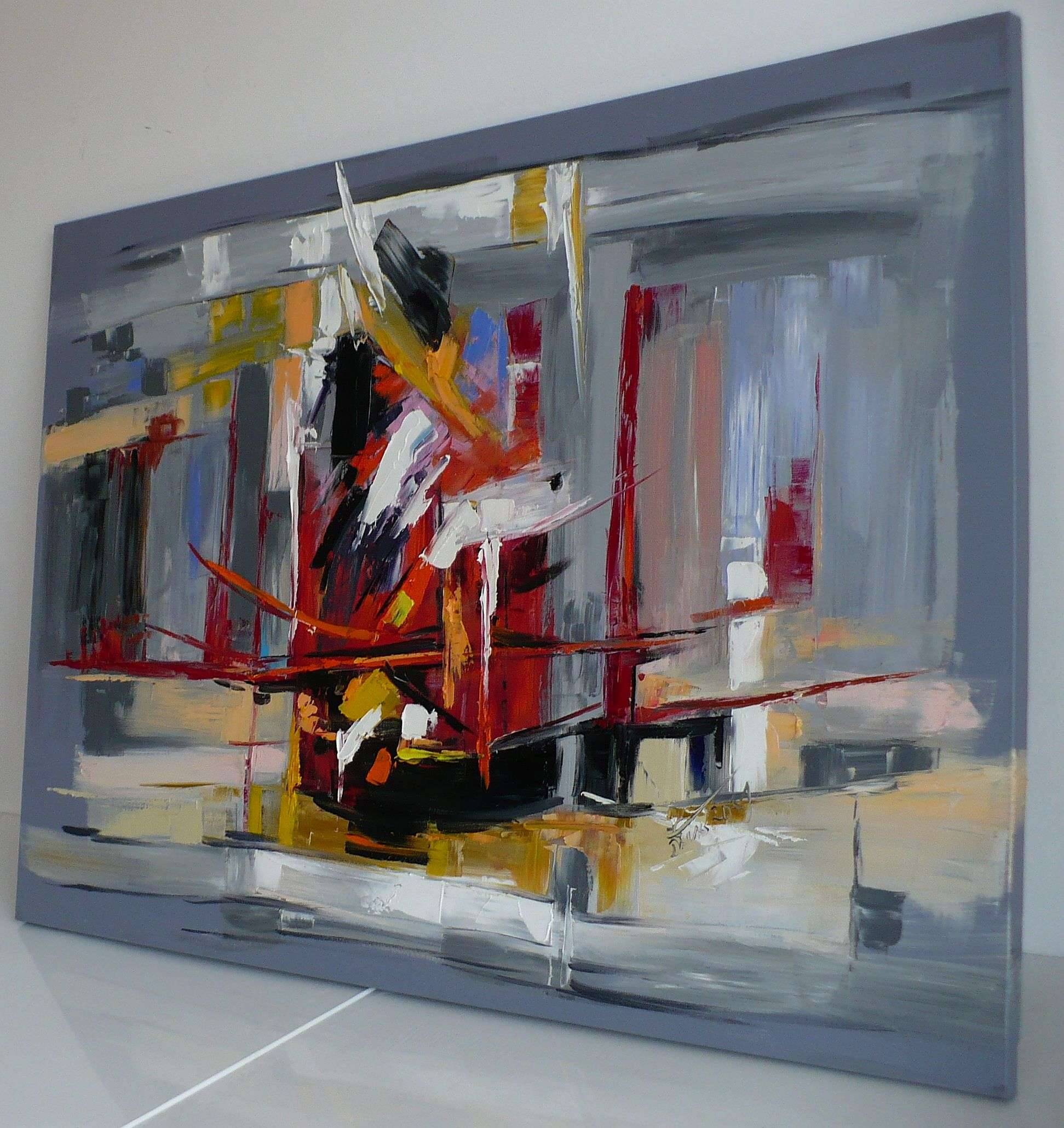 Obraz olejny namalowany na bawełnianym podobraziu pędzlem i szpachla, daje to ciekawą fakturę powierzchni obrazu.