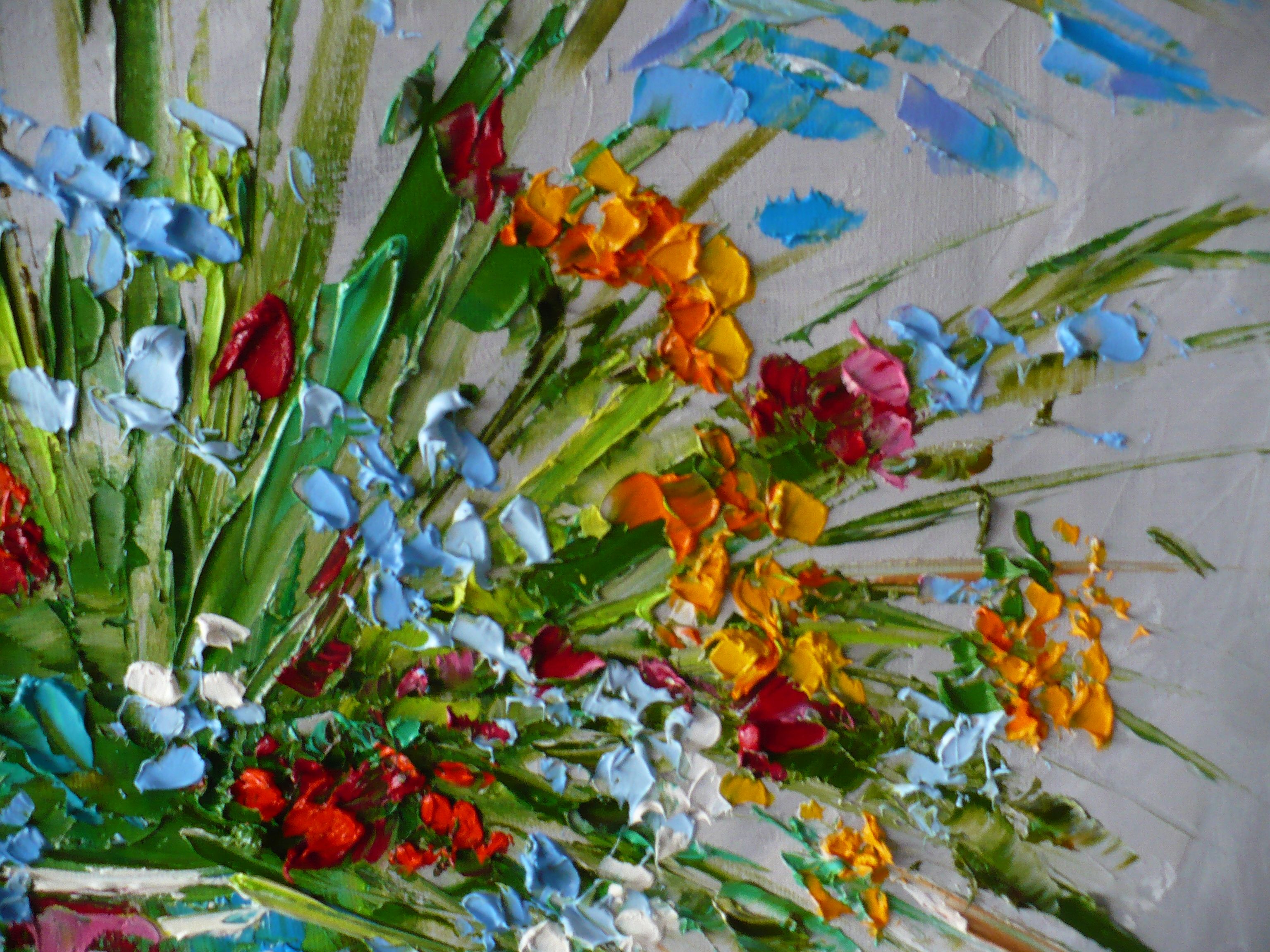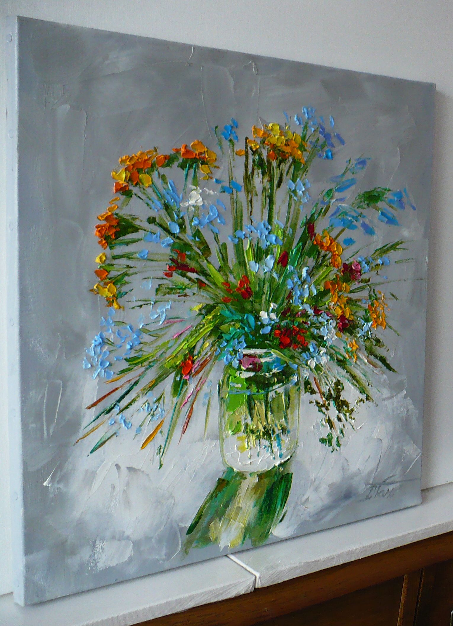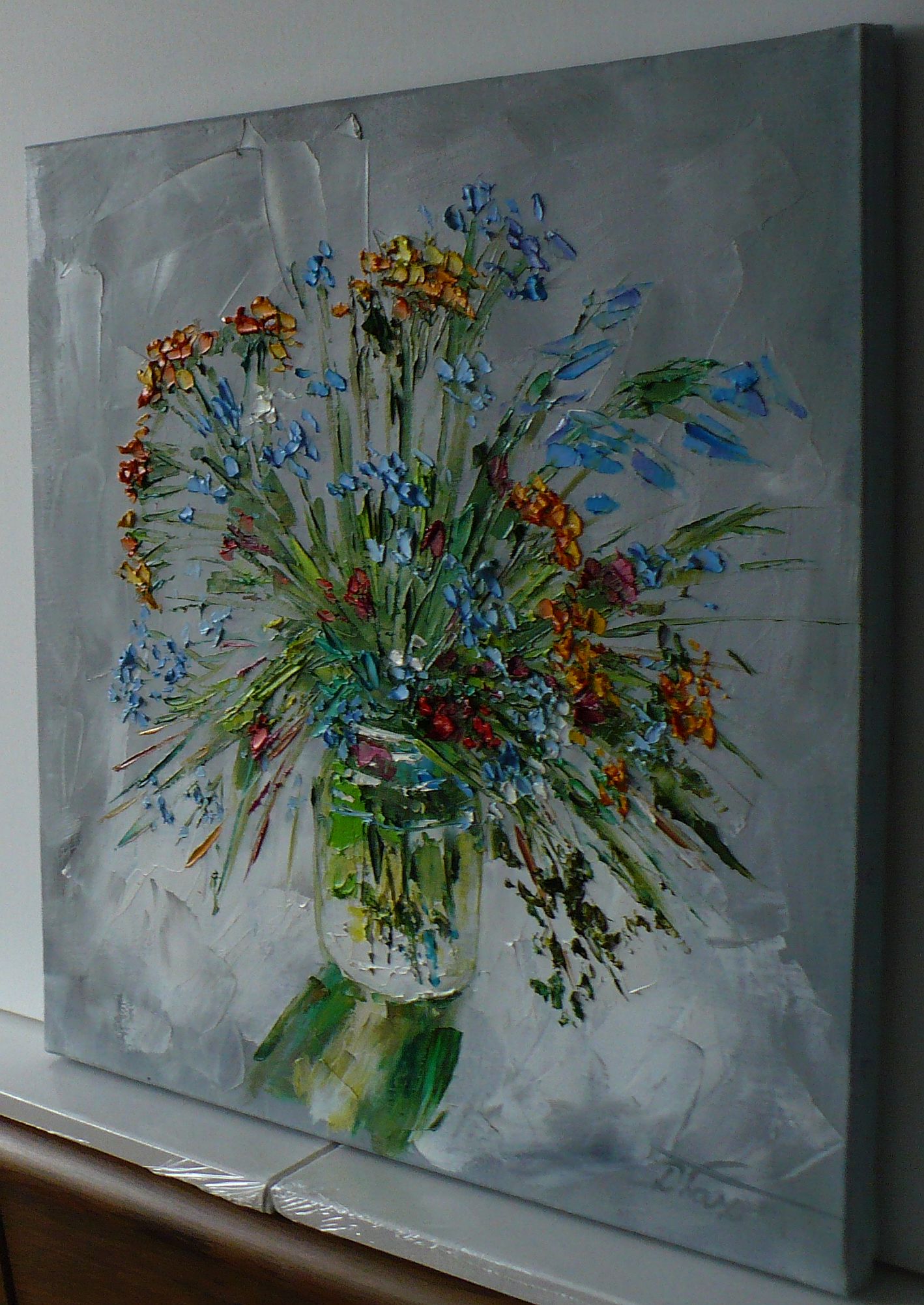 Obraz namalowany jest na bawełnianym podobraziu techniką impasto - ciekawa faktura na powierzchni płótna. Uzyskuje się ją używając do malowania pędzla i szpachelki malarskiej. Boki obrazu zamalowane, nie wymaga oprawy.