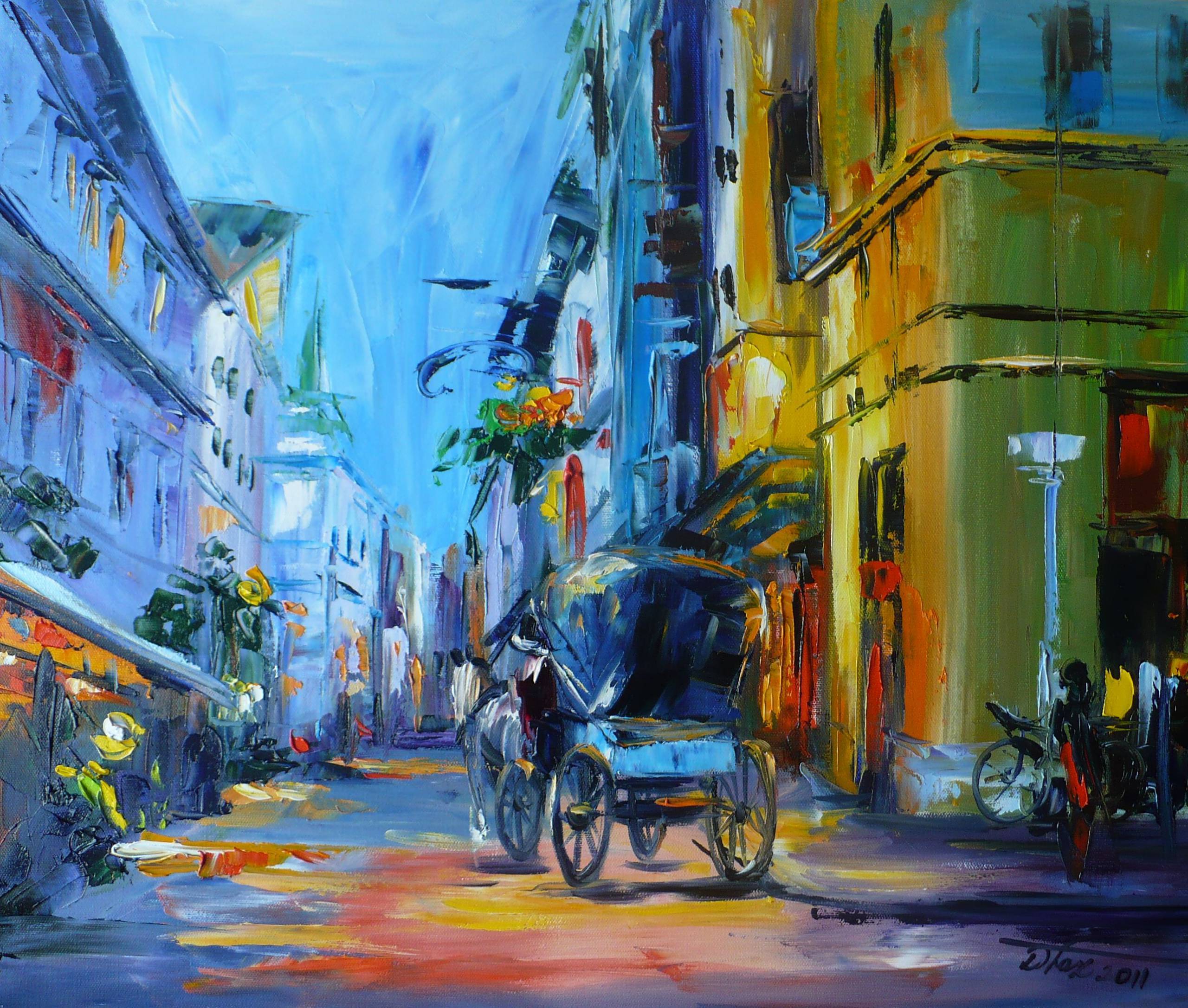 OBRAZ OLEJNY NA PŁOTNIE,NAMALOWANY PĘDZLEM I SZPACHLĄ.