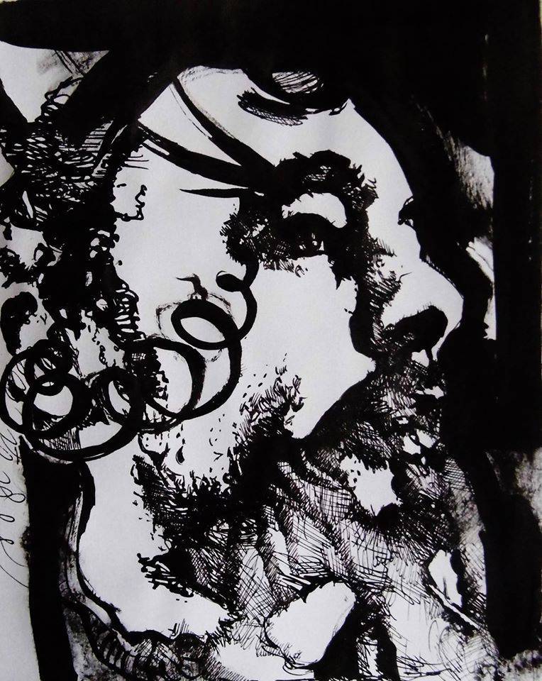Mała forma graficzna wykonana na papierze przy użyciu tuszu kreślarskiego