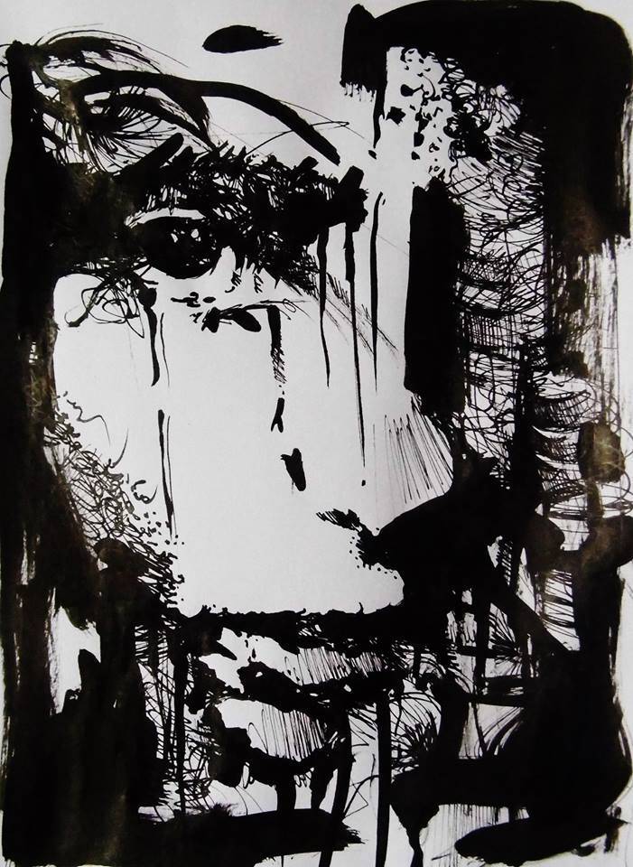 Mała forma graficzna wykonana na papierze przy użyciu tuszu kreślarskiego