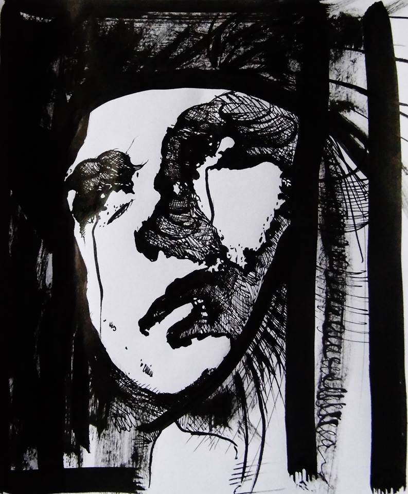 Mała forma graficzna wykonana na papierze przy użyciu tuszu kreślarskiego