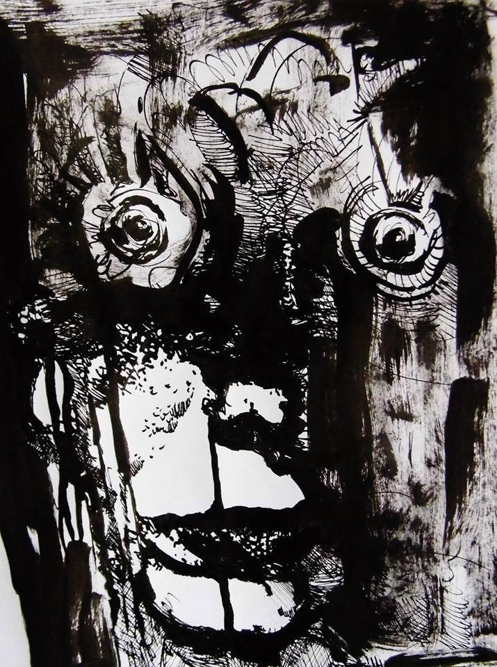 Mała forma graficzna wykonana na papierze przy użyciu tuszu kreślarskiego