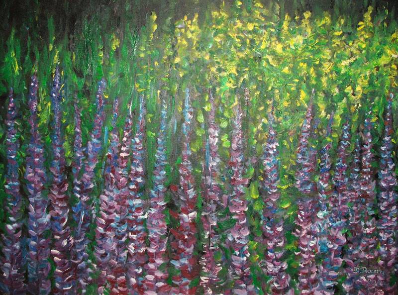 Obraz przedstawia pole łubinu. Niepokojące barwy sugerują, że jest to chwila przed burzą. Dobrze będzie wyglądał w spokojnym wnętrzu nadając mu akcentu i nie pozwalając przejść obojętnie. Ważne jest prawidłowe oświetlenie obrazu, nadające mu jeszcze bardziej niespokojny wygląd.