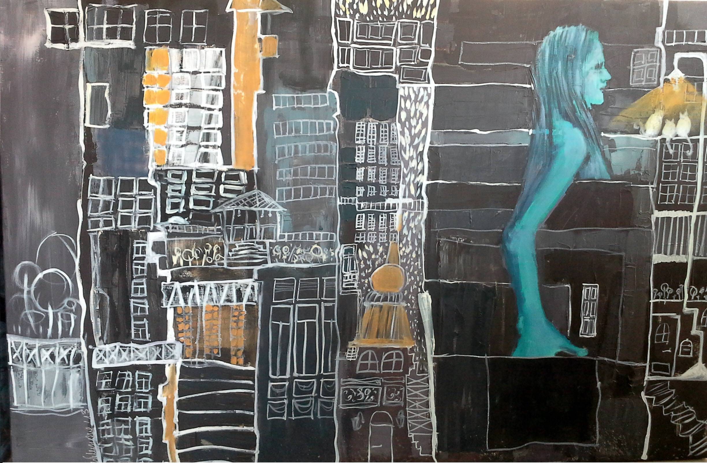 Malując ten obraz ,miałam na myśli ,jak bardzo jesteśmy samotni mieszkając niejednokrotnie w nowoczesnych budynkach,zamkniętych i bezpiecznych osiedlach,gdzie nikt się nie przeciśnie bez uprzedzającej informacji o ,,intruzie,,.