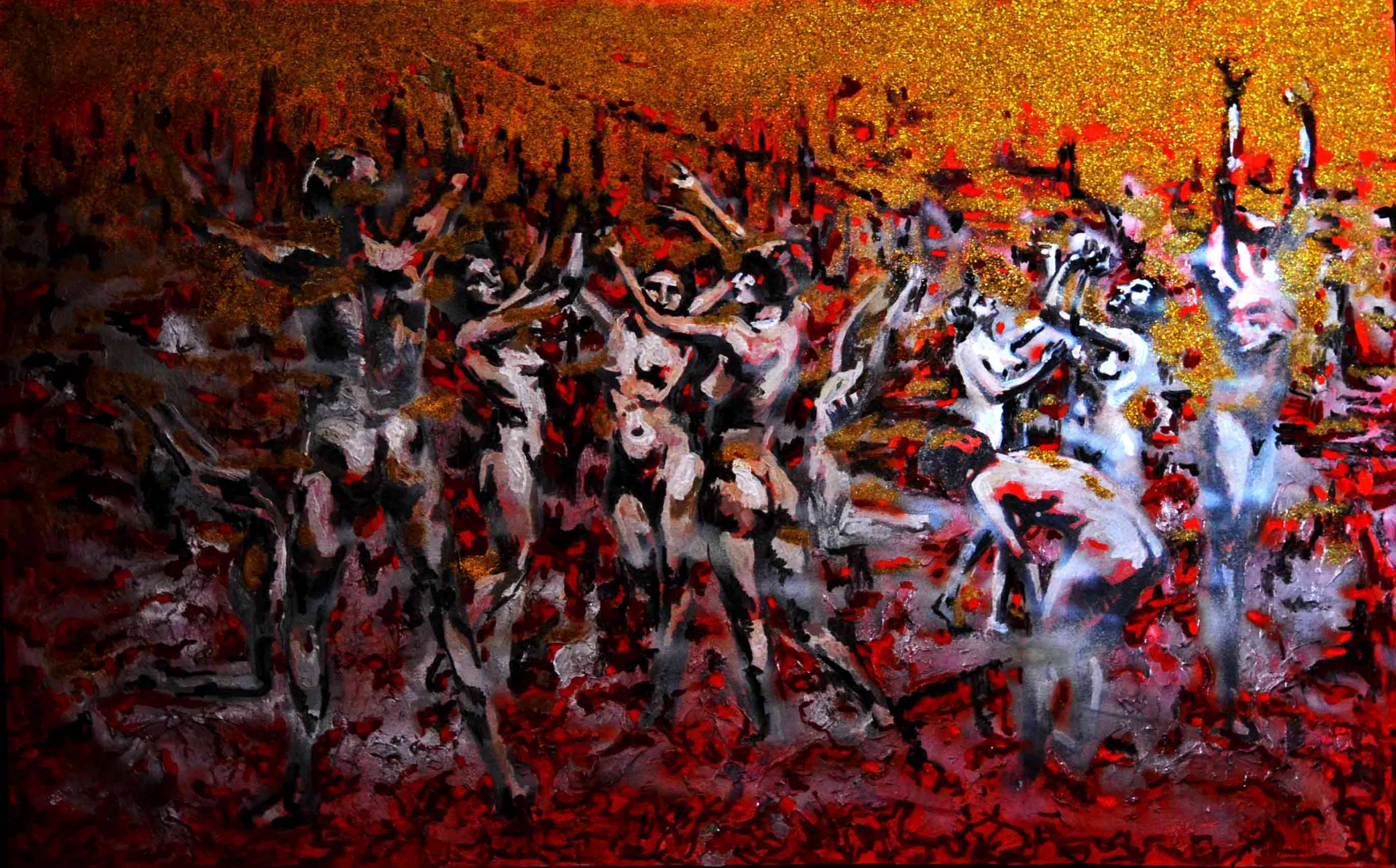 PL Tytuł: Złoto emanuje z nieba Rok powstania: 2016 Rozmiar: 65Х95 сm Technika wykonania: malarstwo Materiał: płótno, olej, mieszane media, blichtr Malarstwo fakturowe. Kolory na zdjęciu nie dużo mogą się różnić od oryginału, to zależy od ekranu komputera. EN Title: Gold oozing from the sky Year of creation: 2016 Size: 65Х95 сm Technique of execution: painting Material: canvas, oil, mixed media, Sparkles textured painting. The colors in the picture not much may vary from the original, It is depending on the computer scree.