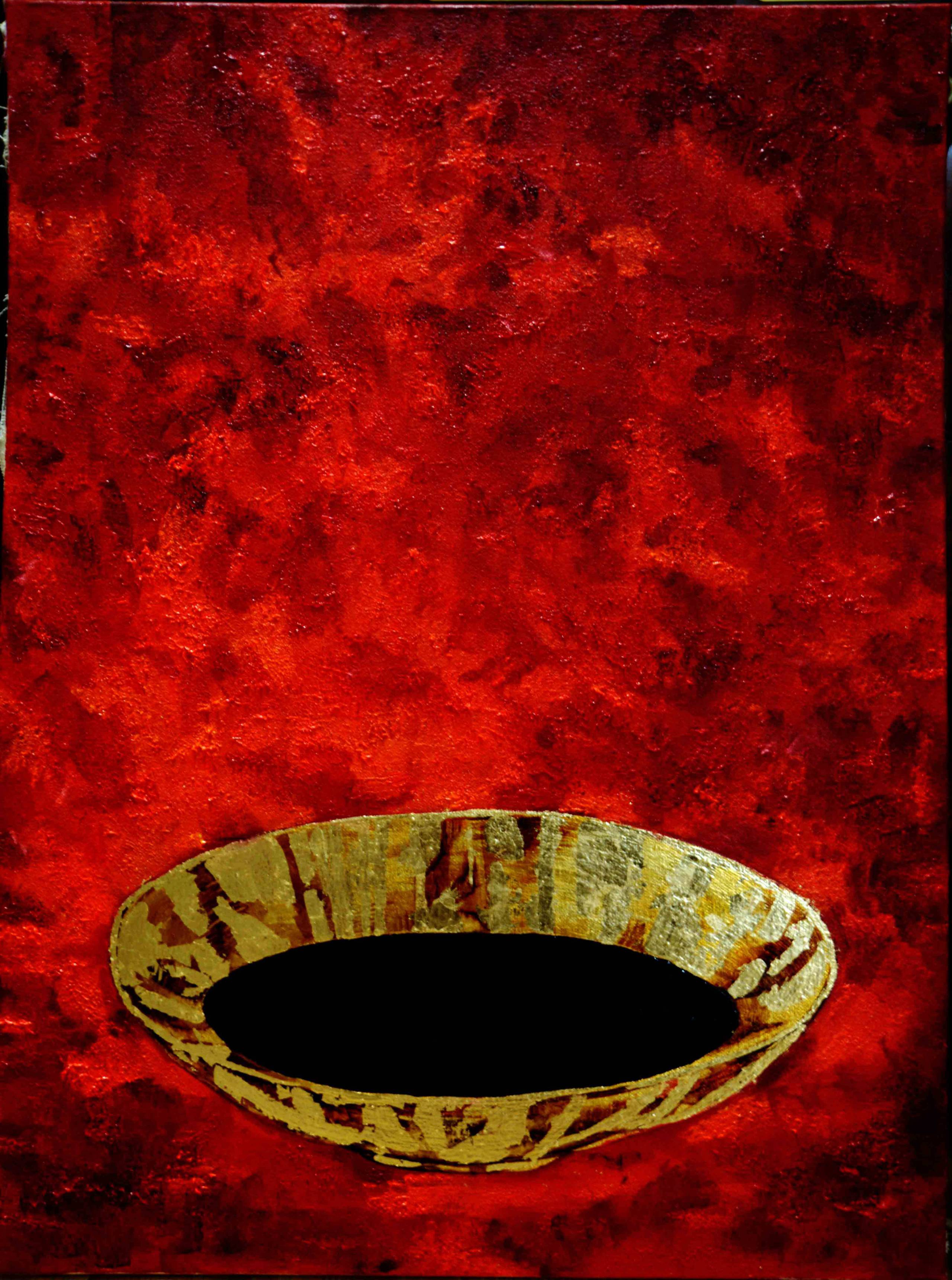 Title: Still life with gold chalice and black water Year: 2017 Size: 50x70 cm Materials: oil on canvas, potal (imitation gold leaf), a glassy varnish, textured paintings, black surface - high gloss with small reflective effect. Technique: painting Direction: minimalism, Fauvism The colors in the picture not much may vary from the original, It is depending on the computer scree Tytuł: Martwa natura ze złotym kielichem i czarnej wody Rok: 2017 Rozmiar: 50x70 cm Materiały: olej na płótnie, Potal (imitacja Złoty liść), szkliste lakierów, teksturowane obrazy, czarna powierzchnia - wysoki połysk z małym skutkiem refleksyjnej. Technika: malarstwo Kierunek: minimalizm, Fowizm Kolory na zdjęciu nie dużo mogą się różnić od oryginału, to zależy od ekranu komputera.