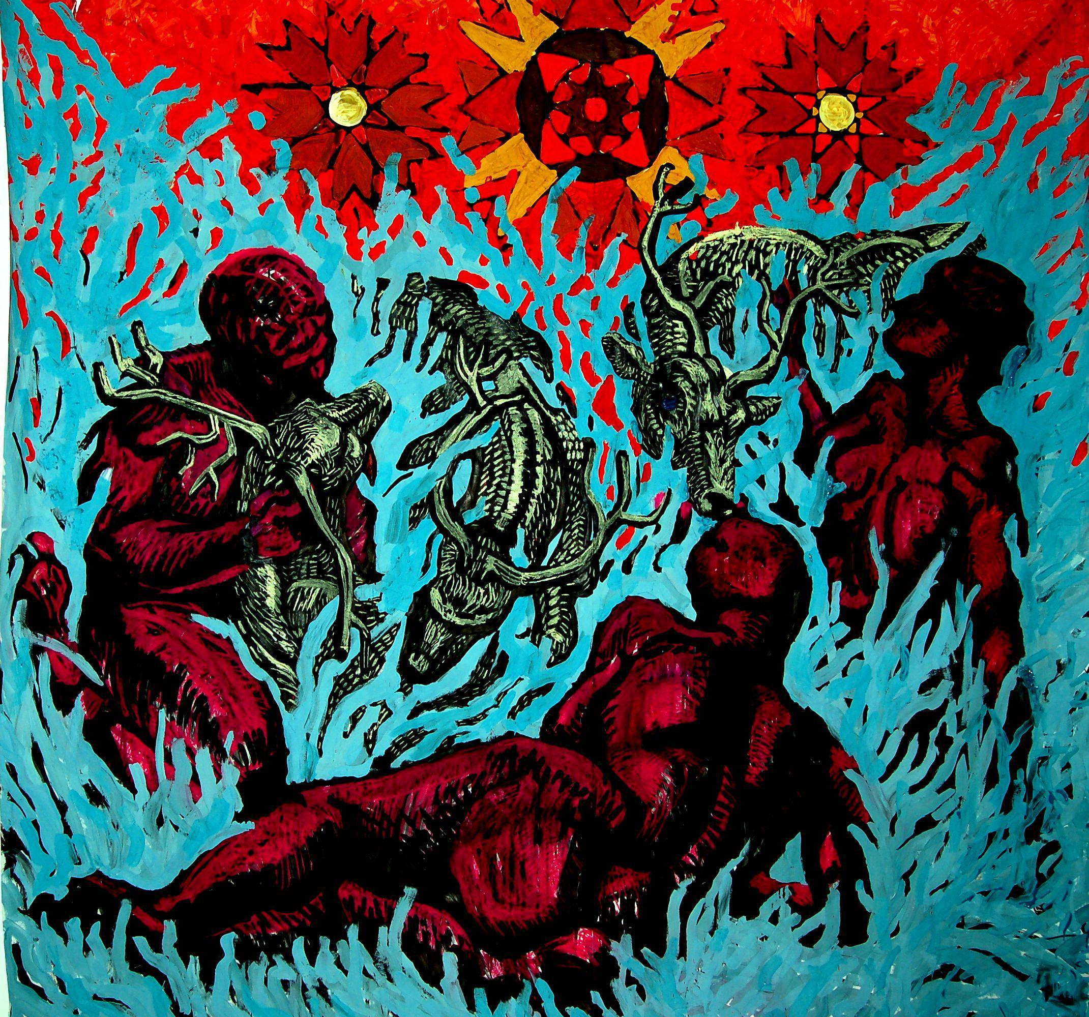 Year of creation: 2012 Size: 196 X 196 cm Technique of execution: painting Material: mixed media, cardboard, acrylic, pastel, ink, gouache
