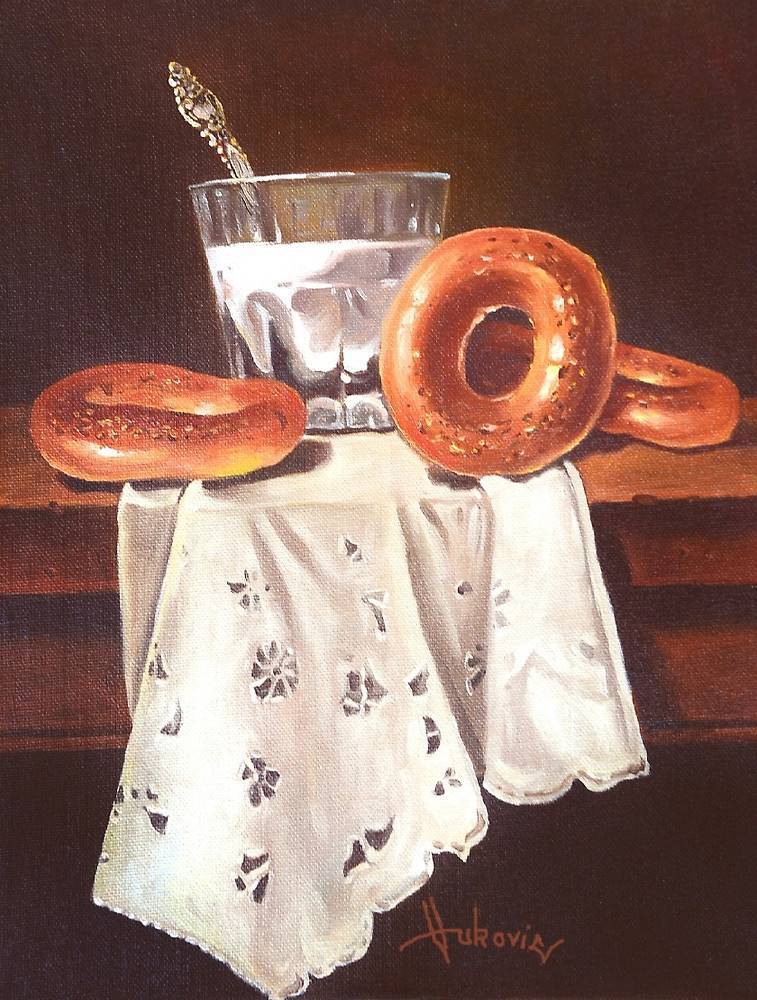 bagel, bagels, lace, still life, milk, breakfast,