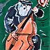 Na obrazie widzimy muzyka, który z pasją gra na wielkim kontrabasie. Tło w intensywnej zieleni kontrastuje z postacią mężczyzny ubranego w ciemny płaszcz i kapelusz, co tworzy dynamiczną kompozycję. Grube pociągnięcia pędzla i żywe kolory nadają dziełu energii i ruchu. Styl artysty nawiązuje do ekspresjonizmu, łącząc uproszczone formy i wyrazistą paletę barw. Postać wygląda trochę jak z bajki. Obraz emanuje dźwiękami jazzu, niemal słychać wibracje strun. "Sound" w powietrzu sprawia, że czujesz się jak w zadymionym klubie jazzowym. Techniką dominującą jest impast, co dodaje głębi i faktury. Kolory są jak emocje – nieoczywiste, zmienne, ale bardzo aktualne. Dzieło może wywoływać u odbiorcy uczucie nostalgii i radości. Przełamywanie formalności i swoboda w malowaniu wprowadza lekkość – taki vibe to ja kupuję! Patrząc na ten obraz, myślę sobie, że sztuka to coś więcej niż widać na pierwszy rzut oka.