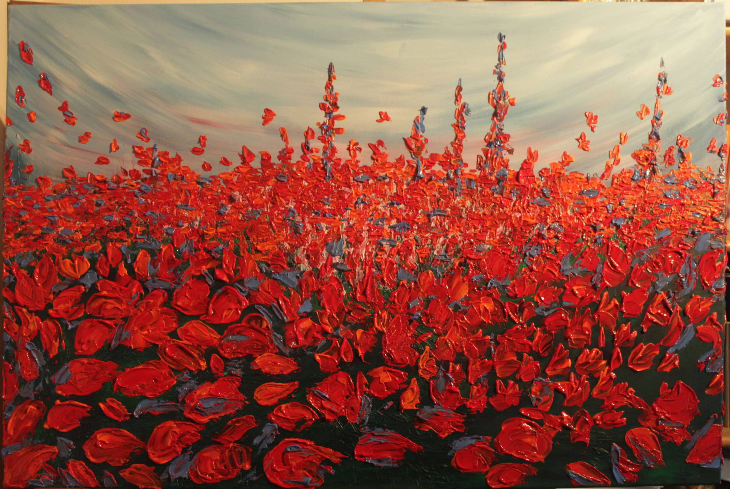 Na obrazie królują intensywne czerwienie polnych kwiatów, które niemal pochłaniają całe płótno. Widoczna płynność linii i nieco chaotyczna kompozycja sprawiają, że wszystko wydaje się w ruchu, jakby tętniło życiem. Kolory są zamaszyste, a grube pociągnięcia pędzla dodają dziełu dynamizmu. Atmosfera, którą emanuje, to mieszanka spokoju i energii. Niewidoczny, lekki wiatr zdaje się poruszać płatkami, przynosząc ze sobą zapach lata. Artysta używa techniki impasto, tworząc fakturę, która przyciąga wzrok. Czujesz, że chcesz dotknąć tego obrazu, jakby na pewno było tam coś więcej do odkrycia. To moje ulubione kwiatki, są takie ładne! Obraz może budzić różne emocje - od radości po nostalgiczne wspomnienia. Dla niektórych, to może być również ucieczka od zimowego marazmu czy powrót do wakacyjnych dni. A touch of magic sprawia, że czujesz się częścią tej scenerii. Wyjątkowy klimat prowokuje do refleksji nad prostymi przyjemnościami życia.
