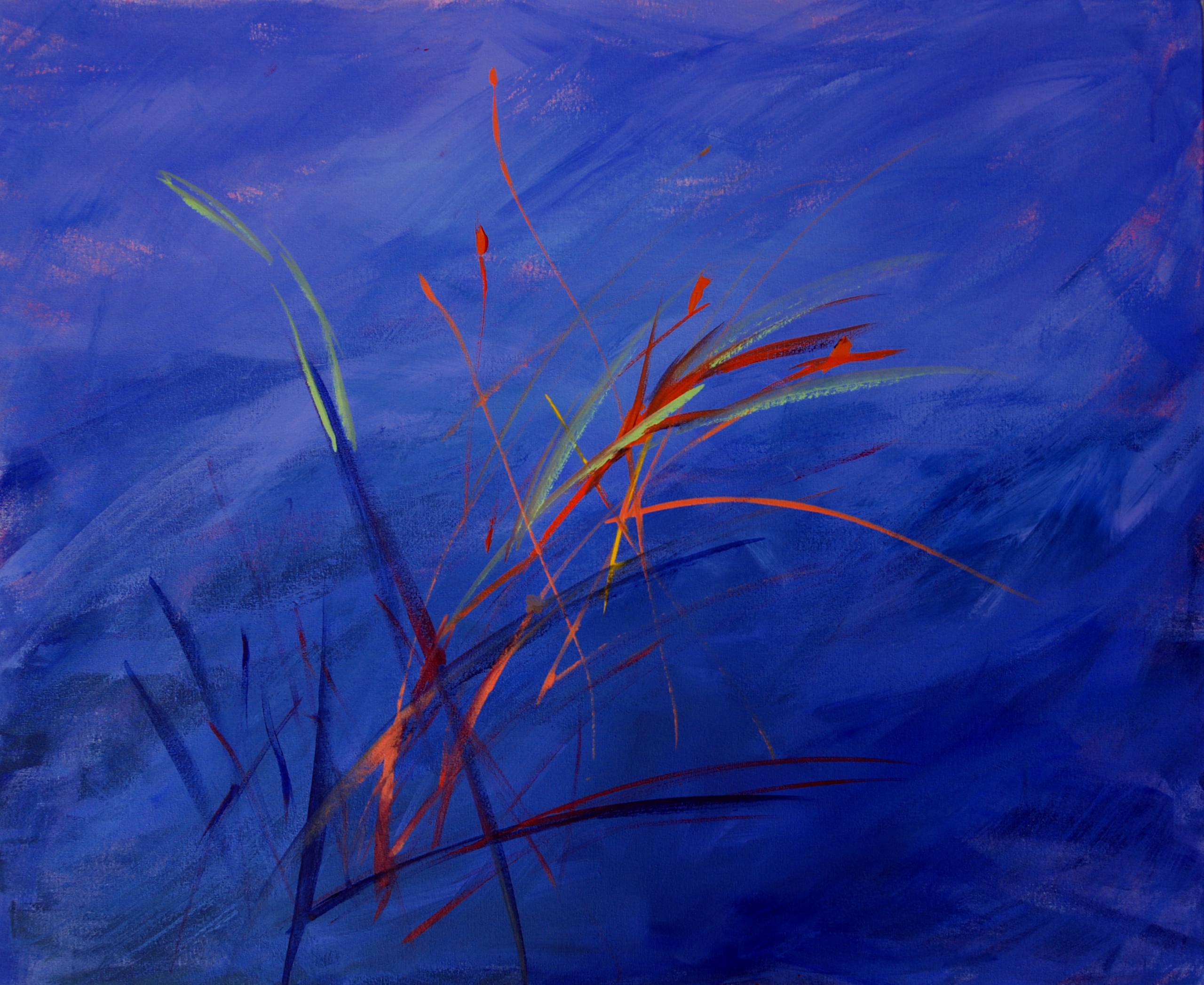 Na obrazie dominuje głęboki błękit, który przynosi na myśl spokojne morze pod wieczór. Niby nic skomplikowanego, prawda? Wygląda jakby kolorowa mgiełka spowijała delikatne, zawiłe linie w odcieniach pomarańczu, zieleni i czerwieni. Te kontrastujące ze sobą barwy wydają się tańczyć na tle błękitu, jakby były częścią jakiegoś tajemniczego rytuału. Kompozycja jest dynamiczna, ale zarazem spokojna, przywodząc na myśl chwilę wytchnienia. Styl artysty jest abstrakcyjny, swobodny i pełen ekspresji. Technika to pewnie jakies pociągnięcia pędzla w stylu wet-on-wet, tworząca płynne przejścia między barwami. Kiedy patrzę na to dzieło, czuję wewnętrzny spokój. Jakby ktoś powiedział „chill out” i cały świat zwolnił na chwilę. Obraz kusi do refleksji nad ulotnością chwili, jednocześnie podsycając wyobraźnię. Może to szept fal czy lekkie muśnięcie wiatru? A może po prostu chaos natury zamknięty w kolorach? Niektórzy mogą uznać ten obraz za przedsmak romantycznej nuty lub nawet za zaproszenie do introspekcji. A ja myślę, że jest jak tajemniczy ogród, do którego chcę wejść, ale tylko na chwilę. To jak widok przez okno, kiedy pada deszcz, a ty siedzisz z kubkiem herbaty. Czyżby artysta próbował uchwycić esencję "spokoju"? Może. Ale każdy widzi co innego, i chyba w tym jest cały urok.