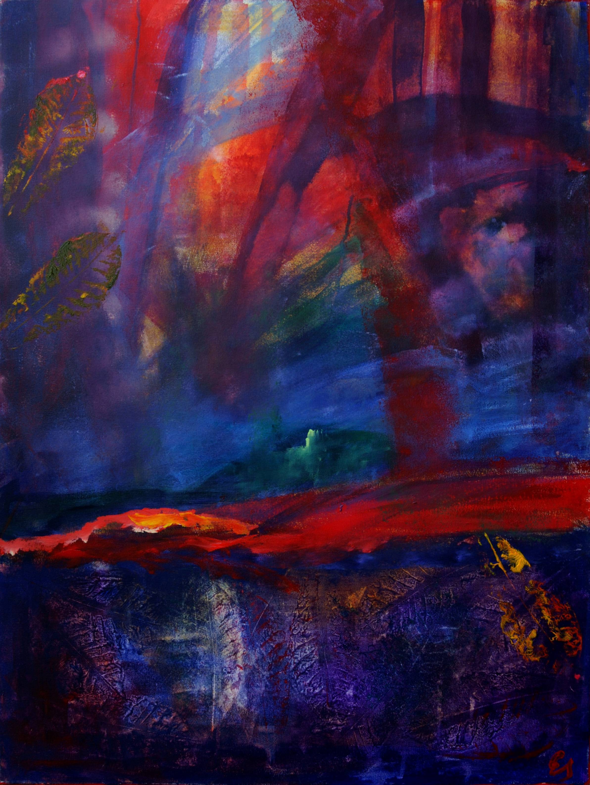 Ten obraz to prawdziwa uczta kolorów. Dominują tu intensywne czerwienie i głębokie błękity, które przenikają się z subtelnymi tonami zieleni i purpury. Kompozycja jest dynamiczna, niemal jakby kolory tańczyły na płótnie, wiążąc się w tajemnicze struktury. Kształty są rozmyte, co dodaje obrazowi pewnej abstrakcyjności, a jednocześnie emanuje z niego aura płomiennych emocji. Styl artystyczny przypomina malarstwo ekspresjonistyczne, w którym artysta używa grubej warstwy farby, by wzmocnić wrażenie głębi. Technika impresji pozwala na grę światła i cienia, co dodaje całości nieco mistycznego, dreamlike klimatu. Obraz może wywołać u odbiorcy różnorodne emocje, od fascynacji po zamyślenie. Moja mama mówi, że to bajkowe góry. Wow! Obraz mówi do mnie „żyj intensywnie”, a te dynamiczne pociągnięcia pędzla jakby zachęcały do refleksji nad własnym życiem. Całość jest jak zaproszenie do świata wyobraźni, gdzie kolory stają się językiem emocji. Czuć tu pewną dzikość, ale i harmonię, coś naprawdę magicznego.