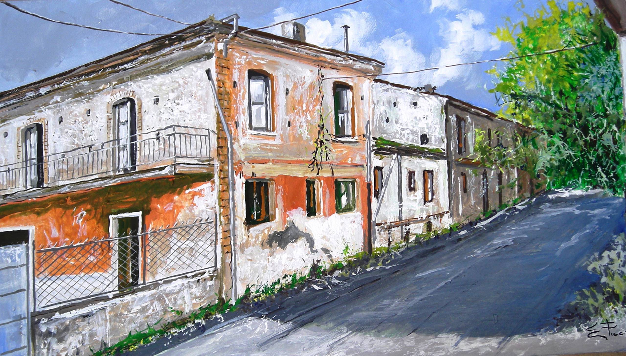 Obraz przedstawia malowniczy, nieco zaniedbany budynek, który kusi swoim urokiem. Przeważają tu ciepłe, zardzewiałe odcienie pomarańczowego i białego, które kontrastują z żywymi zieleniami drzew rosnących po prawej. Kompozycja jest prosta, ale skuteczna, prowadząca wzrok wzdłuż fasady, aż do skąpanego w słońcu nieba. Atmosfera jest nostalgiczna, przywołująca uczucie spokoju i zadumy. Chciałoby się wejść do środka i zobaczyć, co kryje się za tymi oknami. Styl artystyczny przypomina impresjonizm z jego dowolnymi pociągnięciami pędzlem i dynamicznymi kolorami. Artysta używa grubo nałożonej farby, by dodać tekstury i głębi. To trochę jak w starym albumie fotograficznym, w którym wyblakłe zdjęcia odzyskują swoje dawne życie. Patrząc na to, czuję się, jakbym przeniósł do małego miasteczka, gdzie czas płynie wolniej. Można wyczuć lekką melancholię, ale też optymizm. W końcu, nie każde zapomniane miejsce musi pozostać takie na zawsze. Czasem marzy się, żeby zrobić piknik w ogrodzie. Imagine the stories, które to miejsce mogłoby opowiedzieć, gdyby ściany umiały mówić. 7-letnie dziecko mogłoby powiedzieć, że chciałoby tam pobiec i się pobawić, bo wygląda jak z bajki. To obraz, który ożywia wyobraźnię i zachęca do przemyśleń o przeszłości i przyszłości.