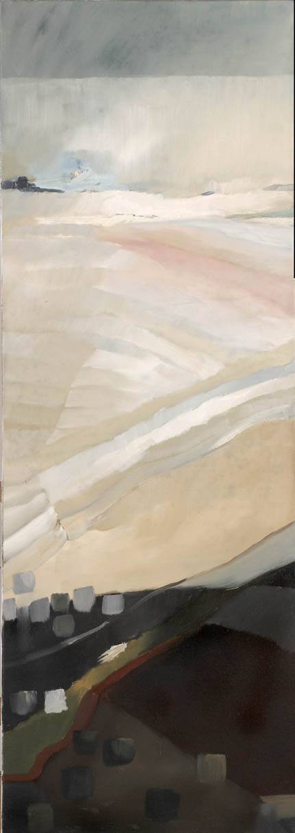 Obraz, na który spoglądamy, to prawdziwy rollercoaster dla oczu. Dominują tu delikatne, pastelowe barwy, które płynnie przenikają się nawzajem. Beż, ecru i ledwie zauważalny róż tworzą pejzaż pełen subtelnych przejść. Wygląda jakby ktoś porozlewał mleko na płótnie i pozwolił mu swobodnie płynąć. Na dole obrazu ciemniejsze plamy, które przypominają odbicia wieczornych cieni. Kompozycja jest lekka, ale równocześnie niepozornie złożona. Atmosfera dzieła jest spokojna, ale może trochę nostalgiczna. Jak ciepły dzień nad morzem, który już się kończy. Styl artysty to czysta poezja barw i kształtów. Widać tu wyraźne wpływy abstrakcjonizmu. Technika jest płynna, jakby pociągnięcia pędzla tańczyły na płótnie, rozmywając się w swoich własnych rytmach. Dzieło emanuje spokojem, ale jednocześnie budzi ciekawość. Jakby chciało opowiedzieć historię bez korzystania z słów. Czuję, że mógłbym tu zginąć na godzinę, próbując zgadnąć, co artysta miał na myśli. Odbiorca może poczuć tęsknotę za nieznanym krajobrazem, odległym i jakby zza sennych marzeń. To jakby w magiczny sposób układały się tu różne elementy. Patrząc na to, można mieć wrażenie, że artysta chciał, abyśmy zapomnieli o całym świecie. Ta mieszanka kolorów i nastroju jest "simply beautiful". Może to tylko ja, ale czuję, że obraz przypomina mi letni poranek, kiedy przez uchylone okno wpada pierwsze światło dnia. "To jest mój magiczny świat!" powiedziałby zapewne mały artysta w sercu każdego z nas.