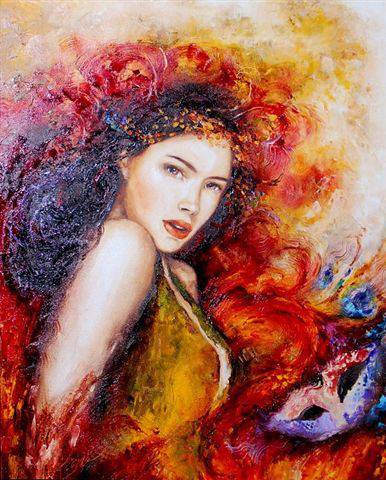 Obraz tętni życiem i kolorami, które wibrują na krawędziach spektrum. Dominują gorące odcienie czerwieni, pomarańczy i żółci, tworząc dynamiczną i ekspresywną kompozycję. Na środku znajduje się kobieta o delikatnych rysach, otoczona wirującymi pasmami barw przypominających płomienie. Jej oczy, pełne tajemnicy, przyciągają jak magnes. Atmosfera dzieła jest pełna energii i pasji, jakby zaraz miało się coś wydarzyć. To jak oglądanie tańca, gdzie każdy ruch jest nasycony emocjami. Styl obrazu jest wyrazisty, z przewagą technik impresjonistycznych. Artysta bawi się teksturą i światłem, co dodaje głębi kompozycji. Czy to jest painting? Tak, zdecydowanie. Możliwe interpretacje tego obrazu to eksplozja emocji, jakie budzi w odbiorcy. Dla mnie to jak patrzenie na duszę sztuki, takiej, która nie boi się wybuchać kolorami. Wow, wygląda jak coś magicznego! – powiedziałoby dziecko. Obraz może wywoływać uczucia zachwytu, a nawet odrobinę niepokoju, jakby krył w sobie ukrytą historię. Kiedy patrzę na te żywe barwy, czuję ciepło i jakąś dziwną euforię. Artysta przekroczył granice zwykłej palety, tworząc coś naprawdę wyjątkowego. Dzieło potrafi poruszyć serce i sprawić, że na chwilę zapomnimy o wszystkim dookoła.