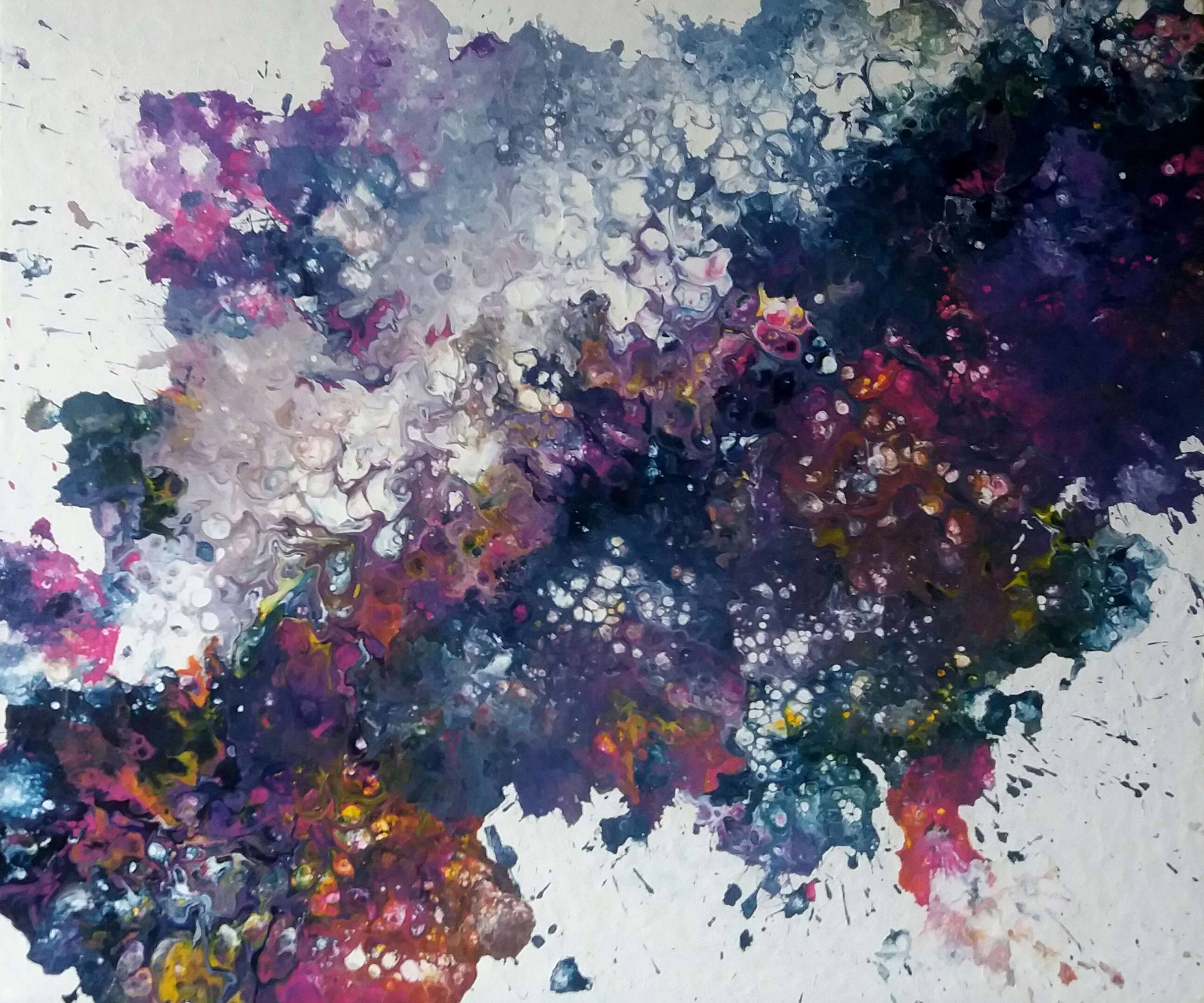 Obraz na płótnie wykonany metodą rozlewania farb akrylowych.Barwny, boki zamalowane.Nie wymaga ramy