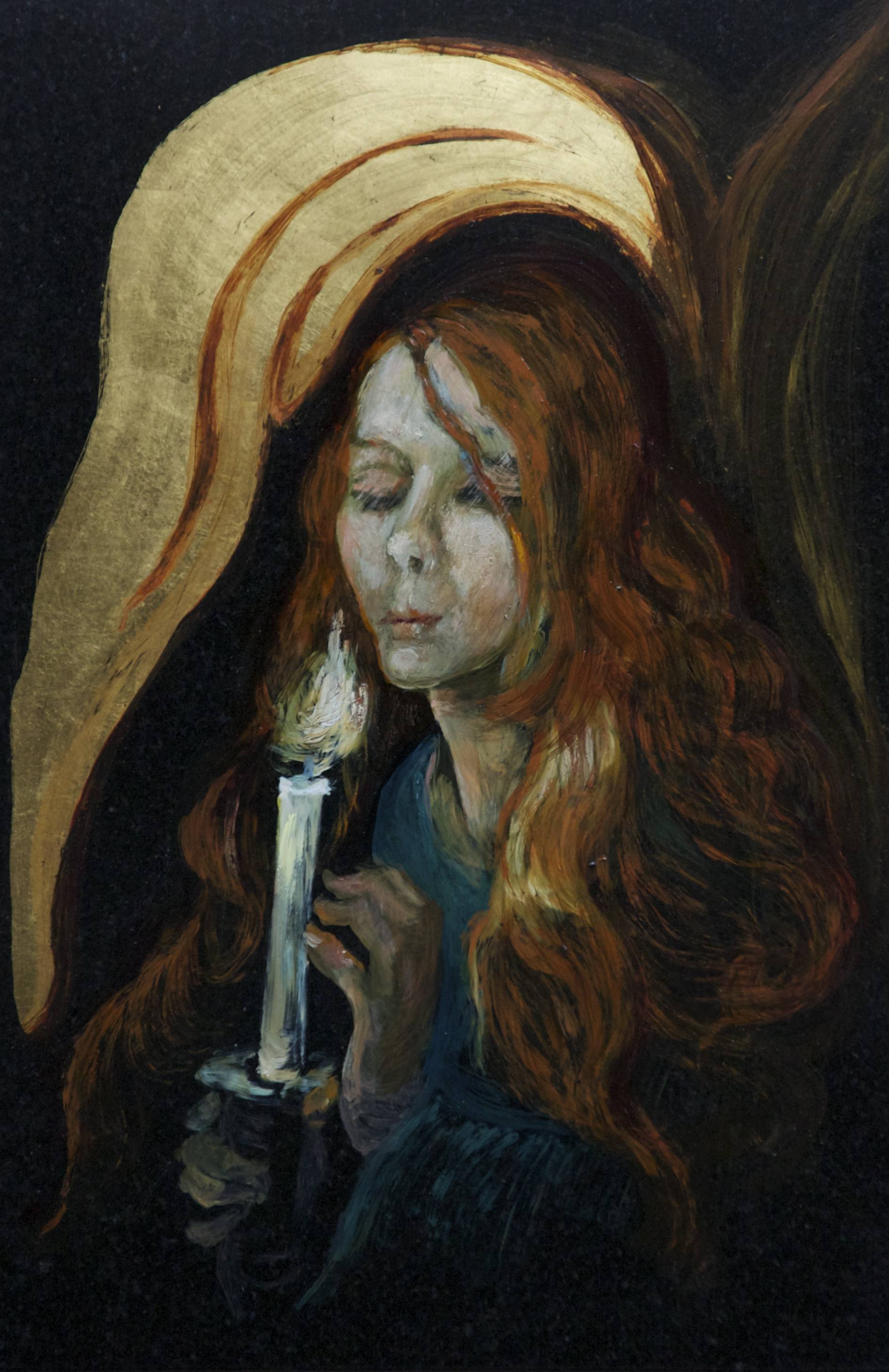 Obraz na granitowej płycie. Malowany w technice olejno-żywicznej, ze złotem karatowym /23 karat/