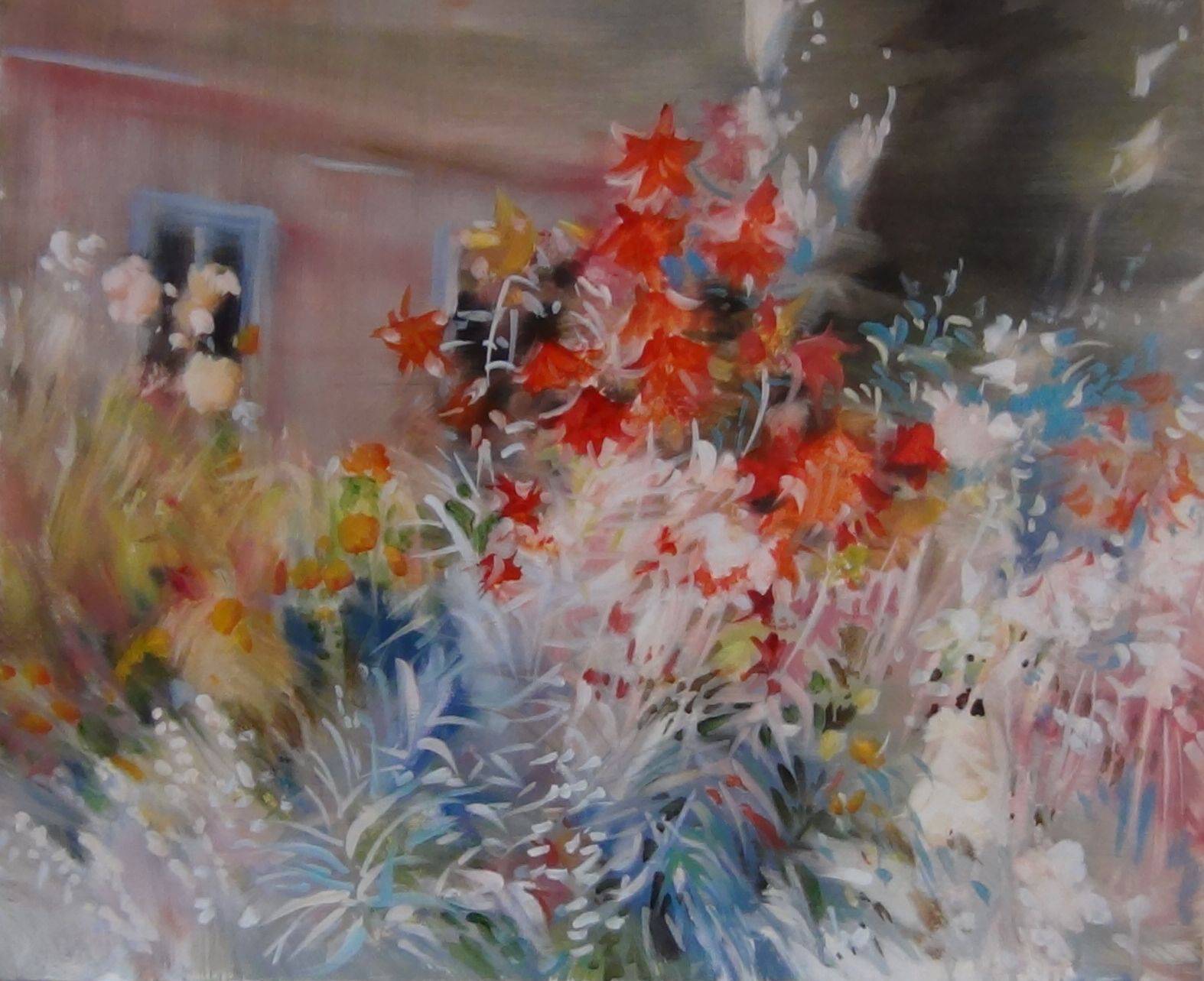 1524/13/2015, Obraz powstał w Łancucie , a inspiracją była dokładnie pałacowa rabata, w parku na tle fragmentu palacu
