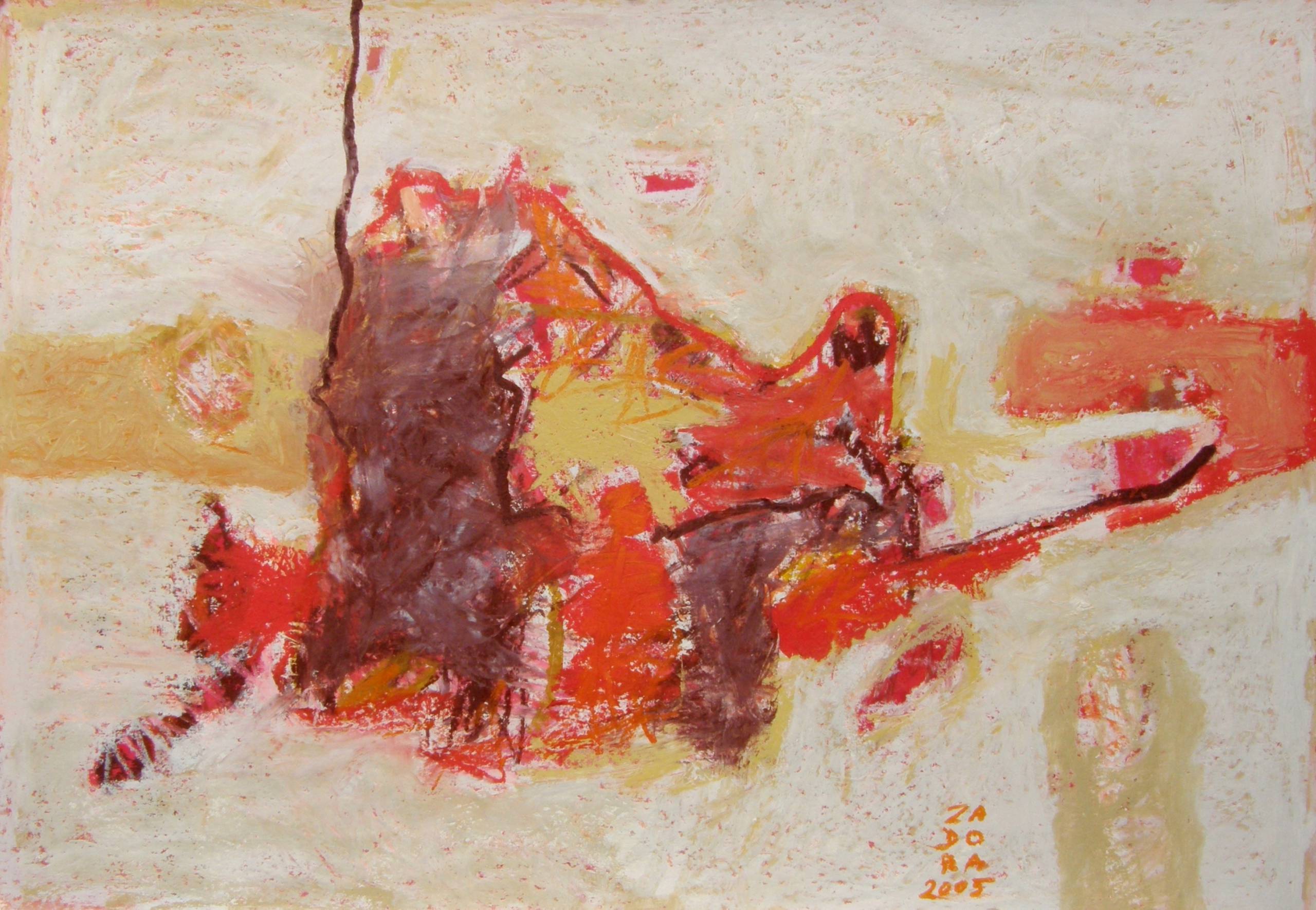 Obraz jest eksplozją kolorów i form, które zdają się ze sobą walczyć o uwagę. Dominują ciepłe odcienie czerwieni i pomarańczu, które mieszają się z subtelnymi beżami i brązami. Struktura kompozycji jest dynamiczna, z przypadkowymi, ale jednocześnie przemyślanymi pociągnięciami pędzla tworzącymi skomplikowaną mozaikę. Patrząc na to dzieło, czuję się jak na gorącej pustyni, gdzie fala upału przeplata się z nutą tajemniczości. Atmosfera obrazu jest intensywna, niemalże burzowa, a jednocześnie tchnąca spokojem. Artysta zastosował technikę impasto, co widać w grubych warstwach farby, dających trójwymiarowy efekt. Ta faktura sprawia, że obraz jest niemalże namacalny, krzycząc "touch me", choć wiadomo, że tak nie wolno. Emocje? To mieszanka ekscytacji i zadumy. Obraz wydaje się mówić do odbiorcy, zmuszając go do refleksji nad chaosem i harmonią życia. Dla mnie osobiście to jak przypomnienie, że piękno często kryje się w nieładzie. Ja tam widzę smoka, mama widzi co innego! To sztuka, która wywołuje emocjonalne zawirowania i jest idealnym przykładem jak abstrakcja może przyciągać i prowokować odbiorców do własnej interpretacji.