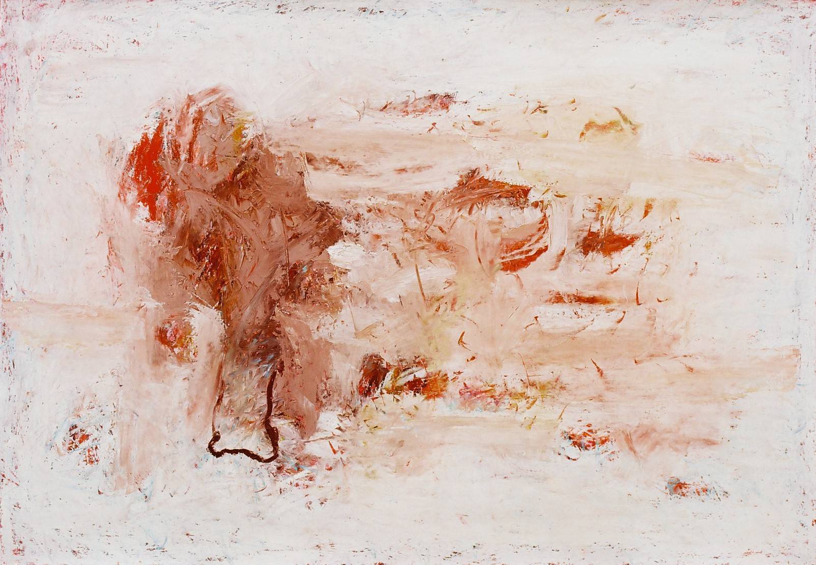 Na obrazie dominuje miękka paleta barw, gdzie ciepłe odcienie brązu i beżu splatają się z subtelnymi akcentami bieli. Kompozycja jest chaotyczna, a jednak zadziwiająco harmonijna. Przypomina pejzaż zasnuty mgłą, gdzie kształty pojawiają się i znikają, tworząc swoiste „puzzle” do złożenia przez wyobraźnię. Nastrój dzieła jest spokojny, choć z nutą tajemnicy. Wywołuje uspokajającą atmosferę, ale też odrobinę niepokoju–jak niedokończona historia. Artysta użył techniki impresjonistycznej, jakby malował serią szybkich pociągnięć pędzla. Faktura jest chropowata i niemal organiczna. Obraz może wywoływać różne emocje. Dla kogoś będzie to ulotne piękno chwili, dla innych–refleksja nad nietrwałością. Patrząc na niego, czuję się jakbym na chwilę zagubił się we własnych myślach, gdzieś między snem a rzeczywistością. W jednej chwili pomyślałem: „Wow, to jakby mieszanka światła i cieni!”, a w drugiej–„Gdzieś tam czai się opowieść”. Może to opowieść o chwili zatrzymanej w czasie, a może o ludzkich emocjach, które pojawiają się i znikają. Wszystko to sprawia, że oglądać ten obraz jest jak sztuka odkrywania ukrytych przez artystę tajemnic. Co by nie mówić, totally enigmatic.