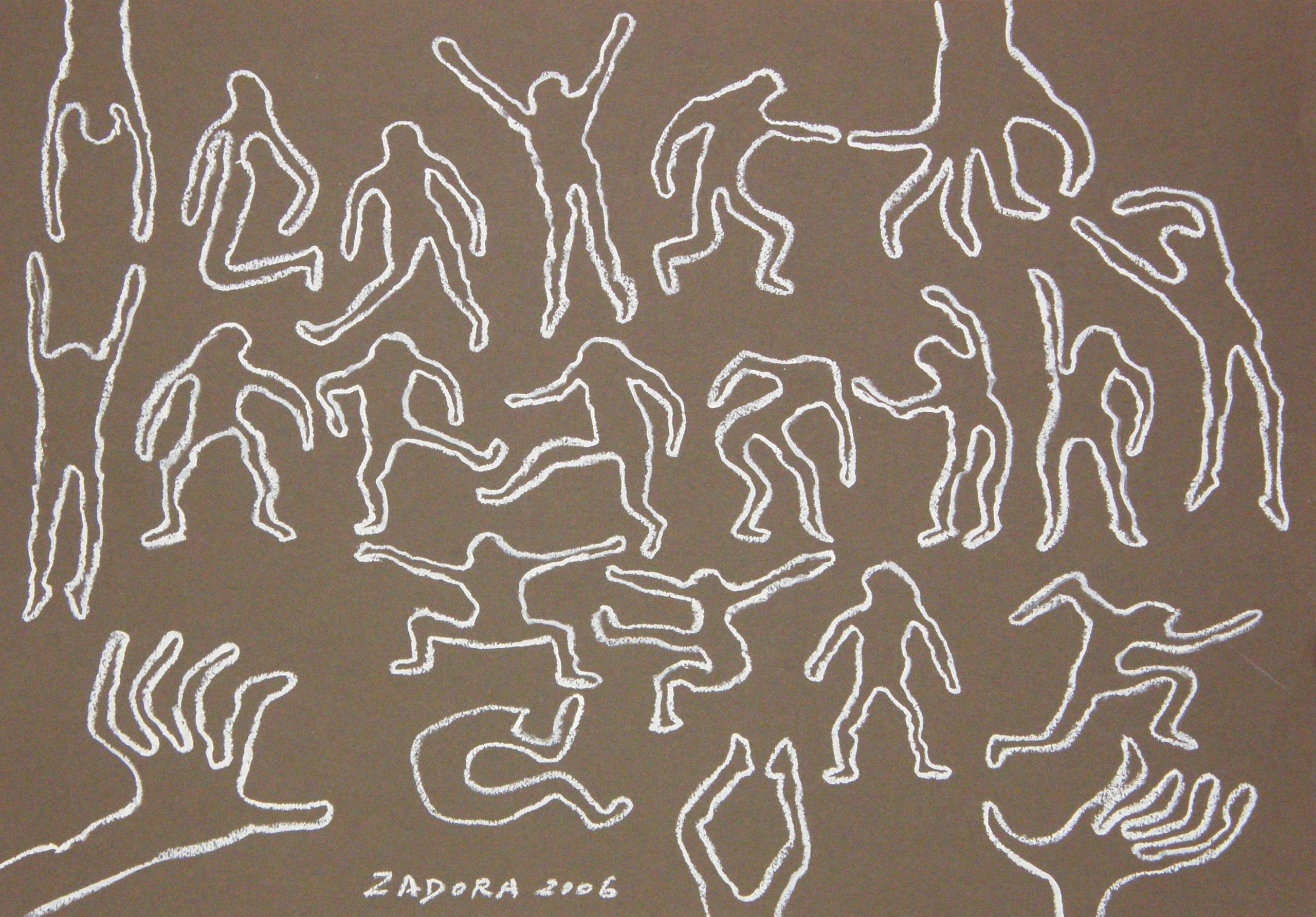 Na obrazku widzimy zestaw białych konturów na ciemnym tle. Proste, niemal dziecięce linie tworzą sylwetki ludzkie w różnych pozach. Każda z nich jest inna, jakby tańczyły lub wykonywały jakąś fantazyjną choreografię. To trochę jak patrzenie na taniec cieni na ścianie. Kompozycja jest dynamiczna, pełna ruchu. Wygląda to prawie, jakby te postacie żyły własnym życiem. Atmosfera obrazu jest niezwykle lekka, przypominająca beztroską zabawę. Czuć tu swobodę i radość, a także pewną tajemniczość. Styl artystyczny jest minimalistyczny, skupiony na podstawowych kształtach. Technikę można by opisać jako coś w rodzaju chalk drawing. To prostota, która przemawia do wyobraźni. Dla wielu odbiorców obraz może wywoływać radość i spontaniczne skojarzenia z dzieciństwem, kiedy to proste linie i figury mogły tworzyć całe światy. A ja myślę, że te postacie zaraz ożyją i zaczną śpiewać albo gadać. Jakie emocje wywołuje? U mnie pojawia się uśmiech i lekka nostalgią. A ty co czujesz? Może ta sztuka przypomina ci o prostocie życia i tych małych chwilach, które warto celebrować. Artysta przypomina, że w minimalistycznej formie kryje się duża moc, a odbiorca zostaje zaproszony do snucia swoich własnych opowieści.