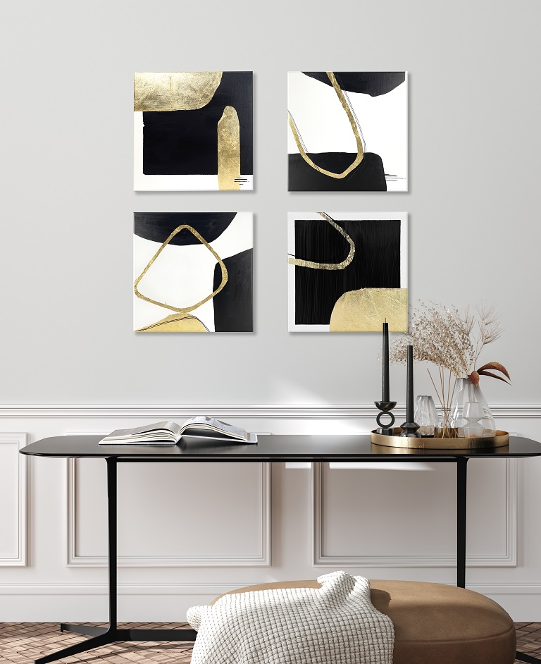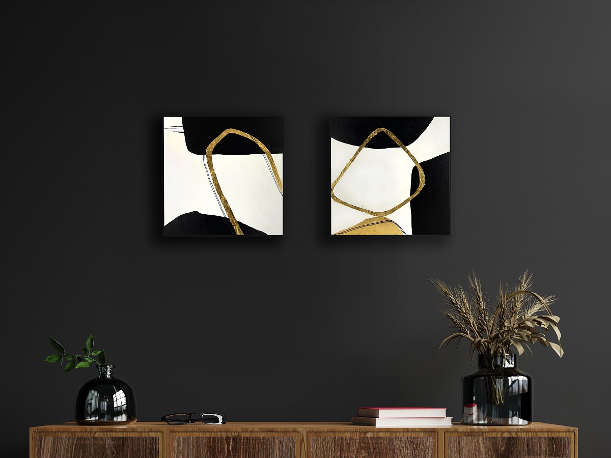 Obrazy z kolekcji Kontrasty to prostota i elegancja w minimalistycznej formie. Złocenia dodają elegancji, zaś nieskomplikowana forma sprawia, że obraz łatwo wpasowuje się w niemal każde wnętrze i styl nadając mu charakteru oraz artystycznej wyjątkowości. Każdy obraz mogę wykonać w dowolnym rozmiarze lub kolorze (pytania proszę kierować na: [email protected]).