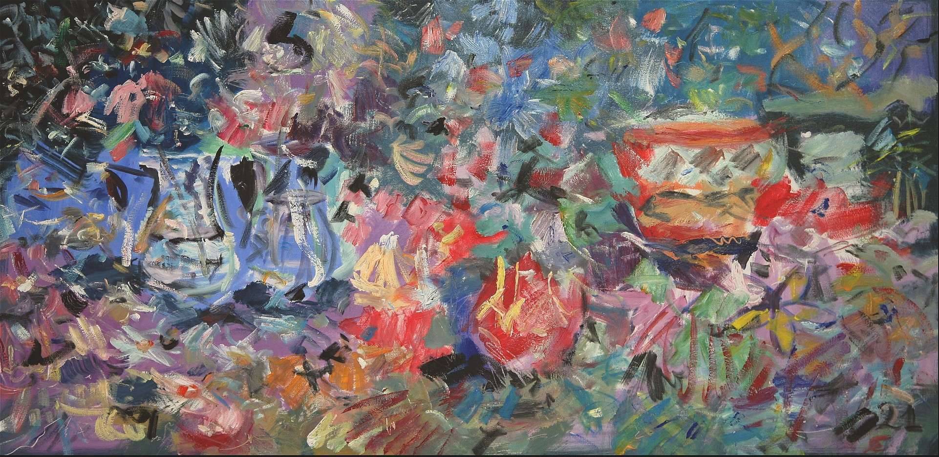 Obraz jest prawdziwym festiwalem kolorów. Dominują tu odcienie niebieskiego i czerwonego, przeplatając się z zieleniami, fioletem i akcentami żółtego. Kompozycja jest chaotyczna, jakby artysta spontanicznie zatańczył pędzlem po płótnie. Jest jak bajka we mgle, w której każdy znajdzie coś innego. Atmosfera? Czysta ekstaza, ale też i spokój. Przechodzi od intensywnej energii po delikatne uspokojenie. Artysta używa szerokich pociągnięć, tworząc dynamiczne faktury. I te kształty! Niby są, ale może ich nie ma. Jak u Ciebie w głowie? Skojarzenia z impresjonizmem są tu na miejscu. Jakby van Gogh i Monet spotkali się na kawie i rzucili się w wir twórczości. Emocje, jakie wywołuje? To może być uniesienie, ale też zaduma. Z jednej strony czujesz, jakbyś znalazł się w środku burzy kolorów, z drugiej niesamowity spokój. Hej, to trochę jak rollercoaster! Obraz krzyczy o wolności i ekspresji, ale też zachęca do refleksji. Dziecko powiedziałoby: "To wygląda jak olbrzymi kalejdoskop!”. I faktycznie. Może to sen, a może rzeczywistość tak niezwykła, że aż trudno ją opisać. Warto się zatrzymać i poczuć ten "wow factor”.