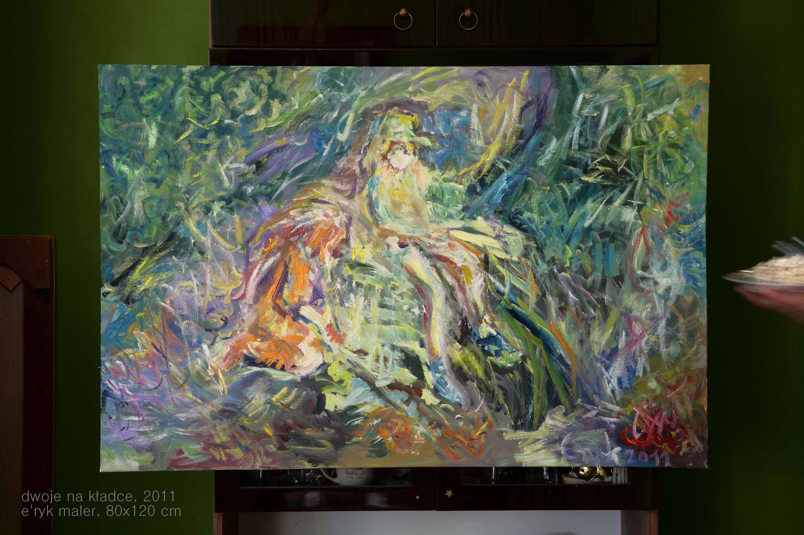 van lenc, V.L. - to jeden z moich pseudonimów artystycznych, farba oto medium, wystarczy obrócić obraz i Chrystusa przerobić w 10 minut na Sztorm, ule w sadzie na dom nad wodą