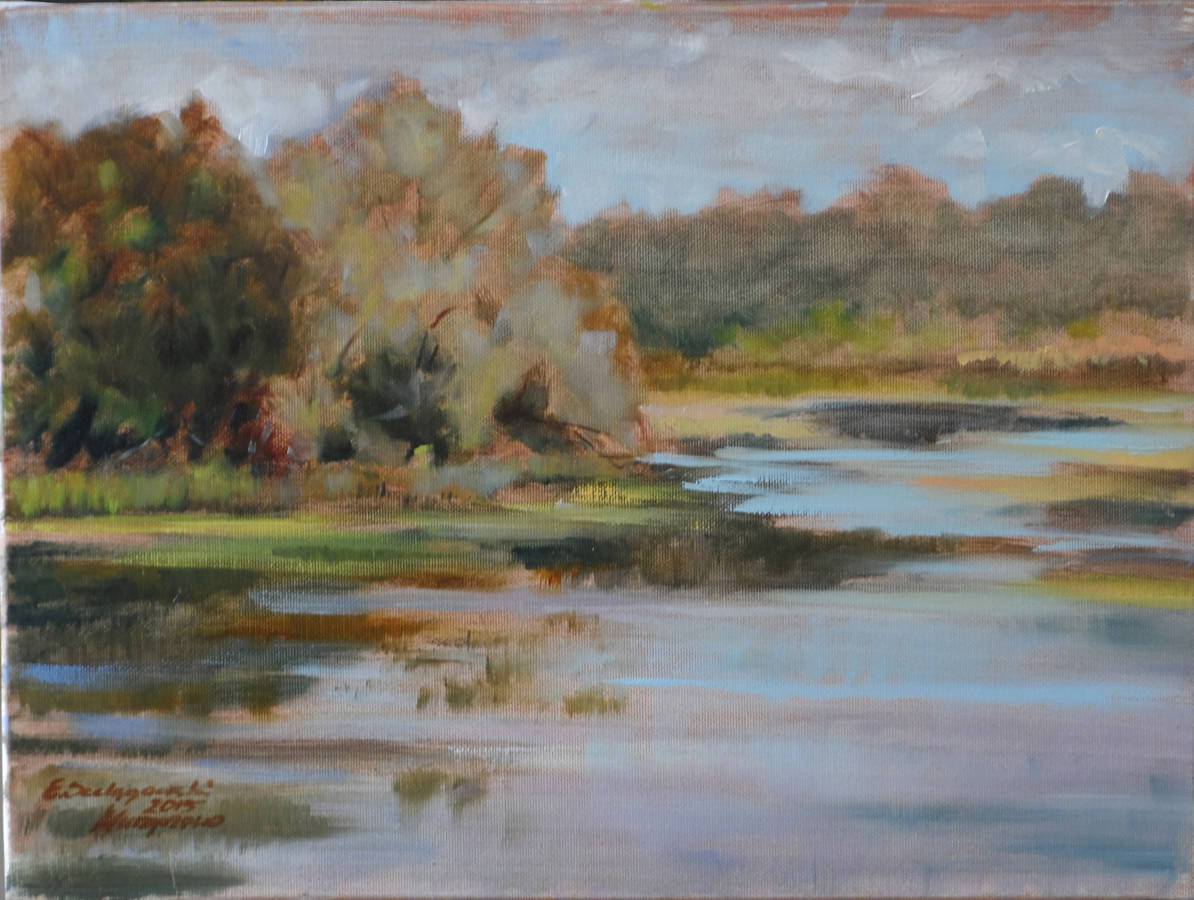 OBRAZ PLENEROWY Z OKOLIC PŁOCKA. PIĘKNE ROZLEWISKA .
