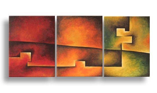 Na obrazie widzimy triptych składający się z trzech płócien, każde z dominacją intensywnych kolorów przechodzących od głębokiej czerwieni przez pomarańcz aż po zieleń. Każde płótno ukazuje geometryczne kształty, które zdają się być w ruchu, jakby tańczyły w płomiennych odcieniach. Kompozycja jest dynamiczna, pełna energii. Kształty przypominają bloki układanki lub schody, co może symbolizować drogę do czegoś nieznanego. Atmosfera tej pracy jest ciepła, a jednocześnie pełna tajemnicy. Można poczuć bijące ciepło i dynamizm. Styl artystyczny to abstrakcja z wyraźnym naciskiem na formy geometryczne. Artysta zastosował technikę, która daje efekt przejść tonalnych, jakby każdy kształt był zanurzony w świetle ognia. Praca ta wywołuje emocje związane z ruchem, zmianą i transformacją. Można się poczuć trochę jak w baśniowym świecie. Dzieło wydaje się mówić, że nawet w chaosie można znaleźć harmonię. Jak by to powiedziało dziecko: to są wystkie kolory jesieni. Ten obraz może skłaniać do refleksji nad własnym życiem — co ja tu widzę, co czuję? To insights of life, zamknięte w prostych formach. Kunszt malarski, energia kolorów i form tworzą dzieło pełne emocji i głębi. Gotowy by odnaleźć własne znaczenie w tych kształtach? Spójrz bliżej.