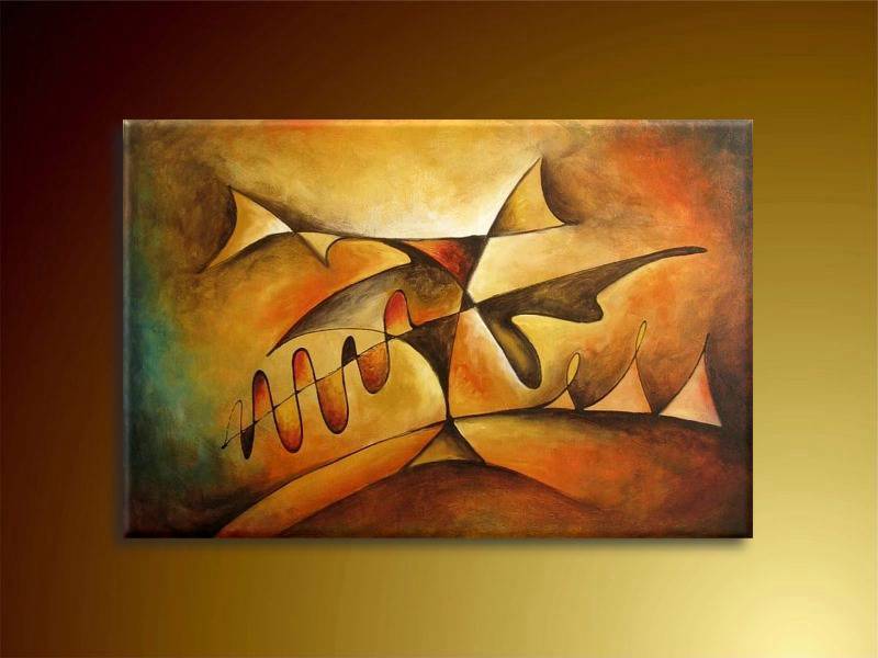Obraz tętni ciepłymi odcieniami brązu, bursztynu i złota, wciągając nas w świat pełen tajemniczych kształtów i abstrakcji. Na płótnie widoczne są krzywe linie i ostre trójkąty, które tworzą dynamiczną kompozycję. Elementy te zdają się niemal tańczyć na powierzchni, dając wrażenie ruchu. Atmosfera obrazu jest niezwykle intrygująca i nieco tajemnicza. Artysta zastosował technikę, która łączy miękkie pociągnięcia pędzla z wyraźnymi konturami, co dodaje głębi i ekspresji. Czujesz się jak w kalejdoskopie emocji, gdzie każdy może zobaczyć coś innego. Na pierwszy rzut oka wydaje się, jakby obraz był pełen energii i życia. Ale z drugiej strony emanuje z niego spokój, bardzo zresztą przyjemny. To taki prawdziwy dwulicowy friend, jakby chciał opowiedzieć dwie różne historie naraz. "Słońce świeci i jest ciepło", jak powiedziałby mały Franek. Obraz wprowadza w nastrój zadumy, zachęca do refleksji nad otaczającym nas światem. Podejście do sztuki w stylu art deco sprawia, że czuje się tu wpływ modernizmu. Ciekawość, to pełne słowa klucz w odbiorze tego dzieła. Tylko patrząc na nie, można odbyć podróż przez własne myśli i uczucia. Truly unikalne doświadczenie. Każdy może odnaleźć w nim coś swojego, czasem nawet niezrozumiałego. I to jest właśnie siła tego obrazu.