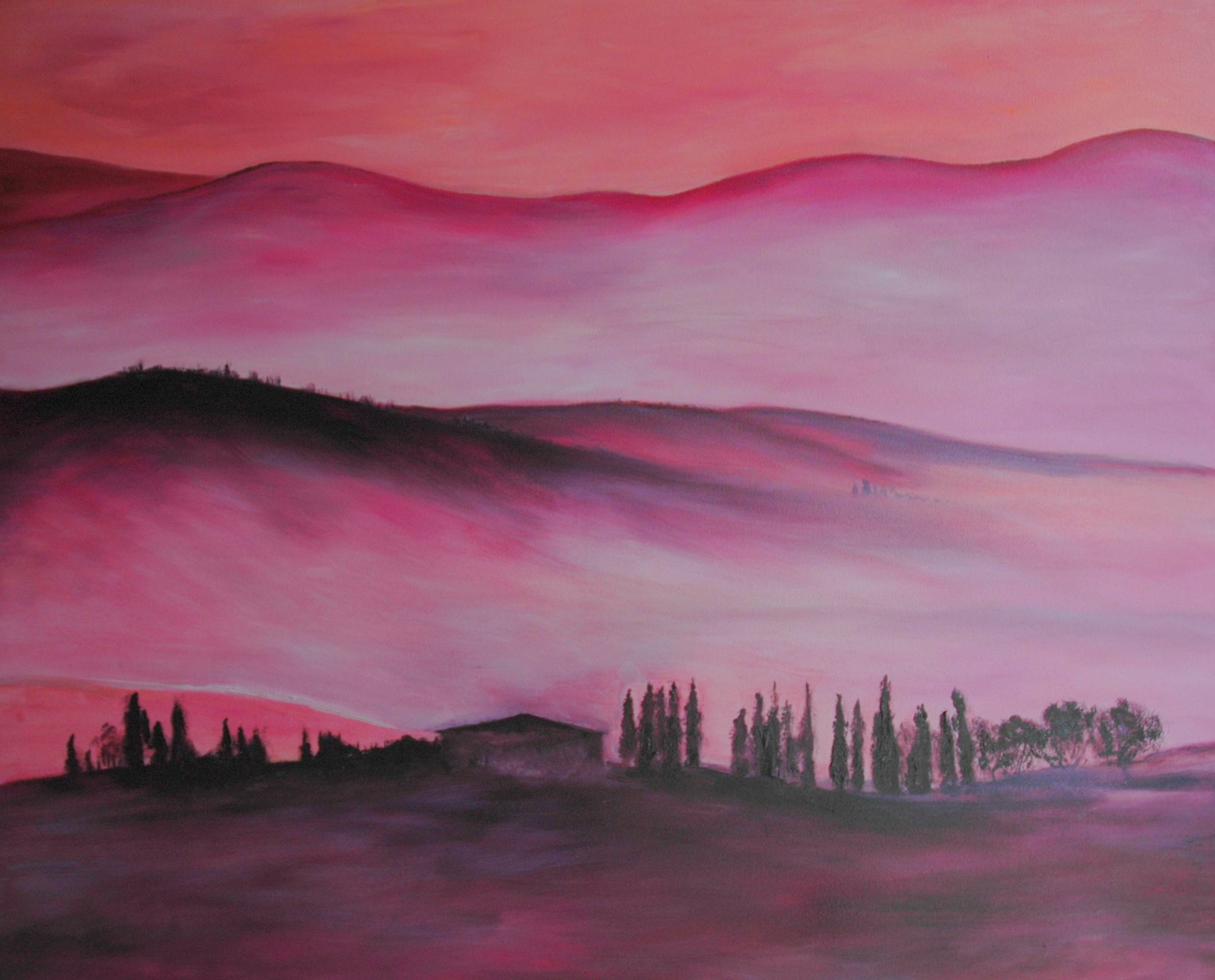 Jeden z serii obrazów pokazujący piękną Toskanię inaczej. Tym razem Toskania o brzasku w " magentowej" mgle. Inne trochę odrealnione przestrzenie. A to też Toskania..