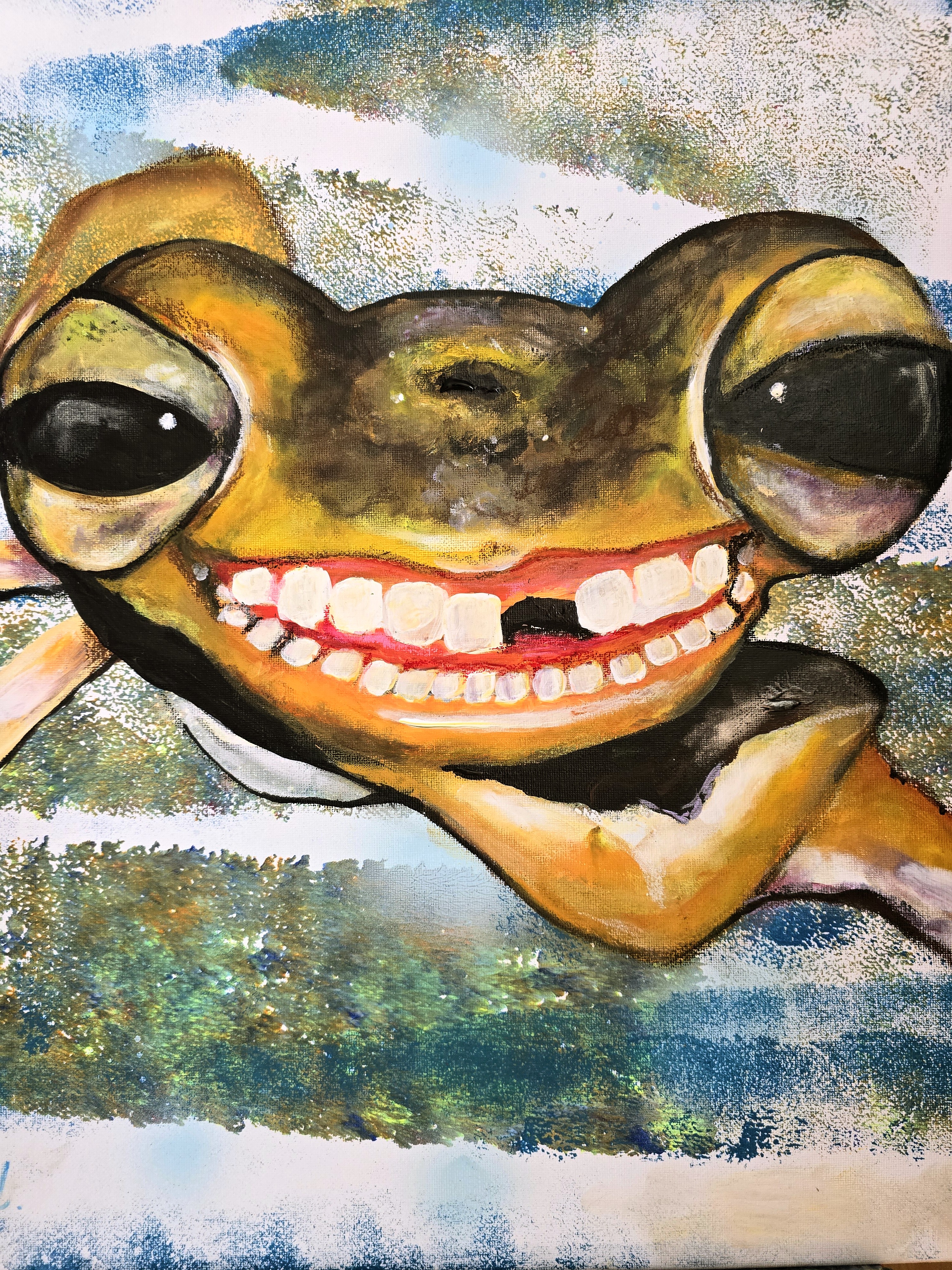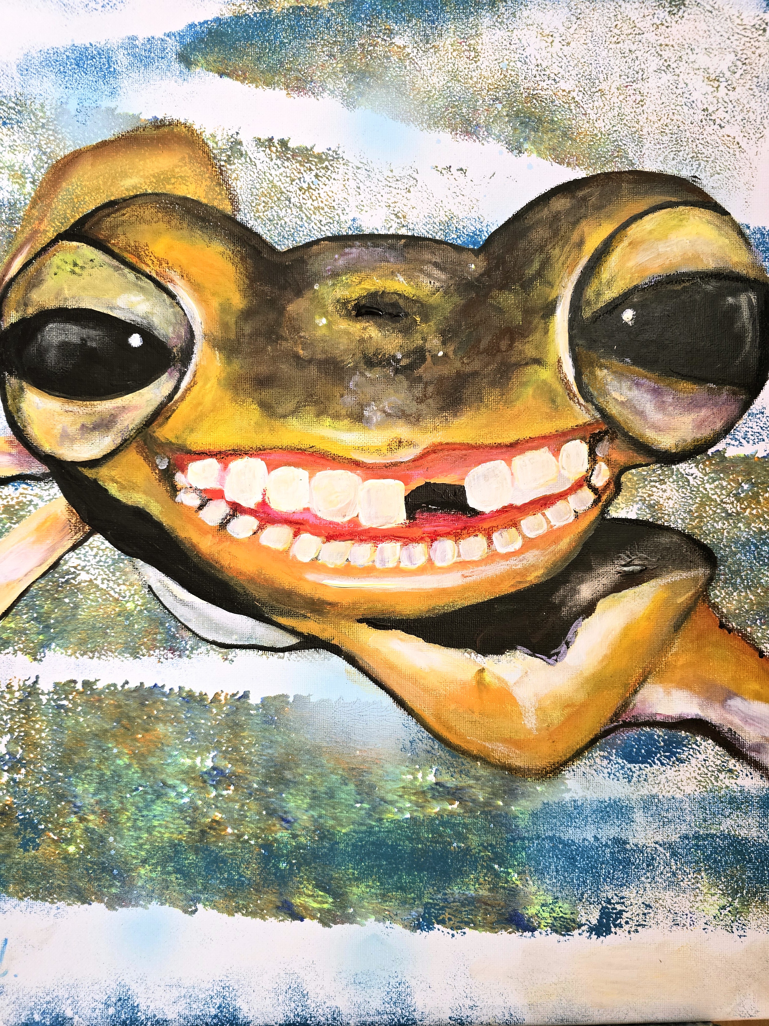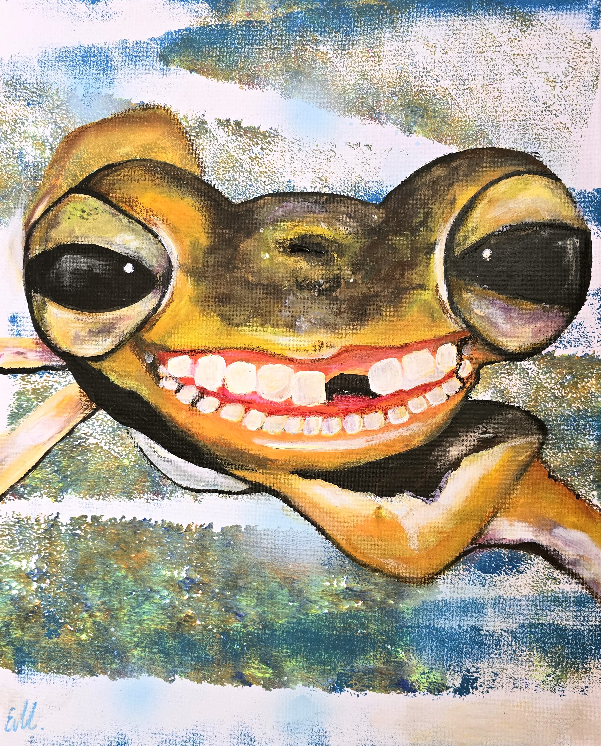 Szanowni Państwo  Obraz akrylowy ręcznie malowany na płótnie naciągniętym na bjetram drewniany.  Sygnowany na rewersie.  Boki pomalowane w tym samym kolorze. Obraz pokryty jest werniksem damarowym z połyskiem.  Polecam serdecznie  Ewa Mościszko