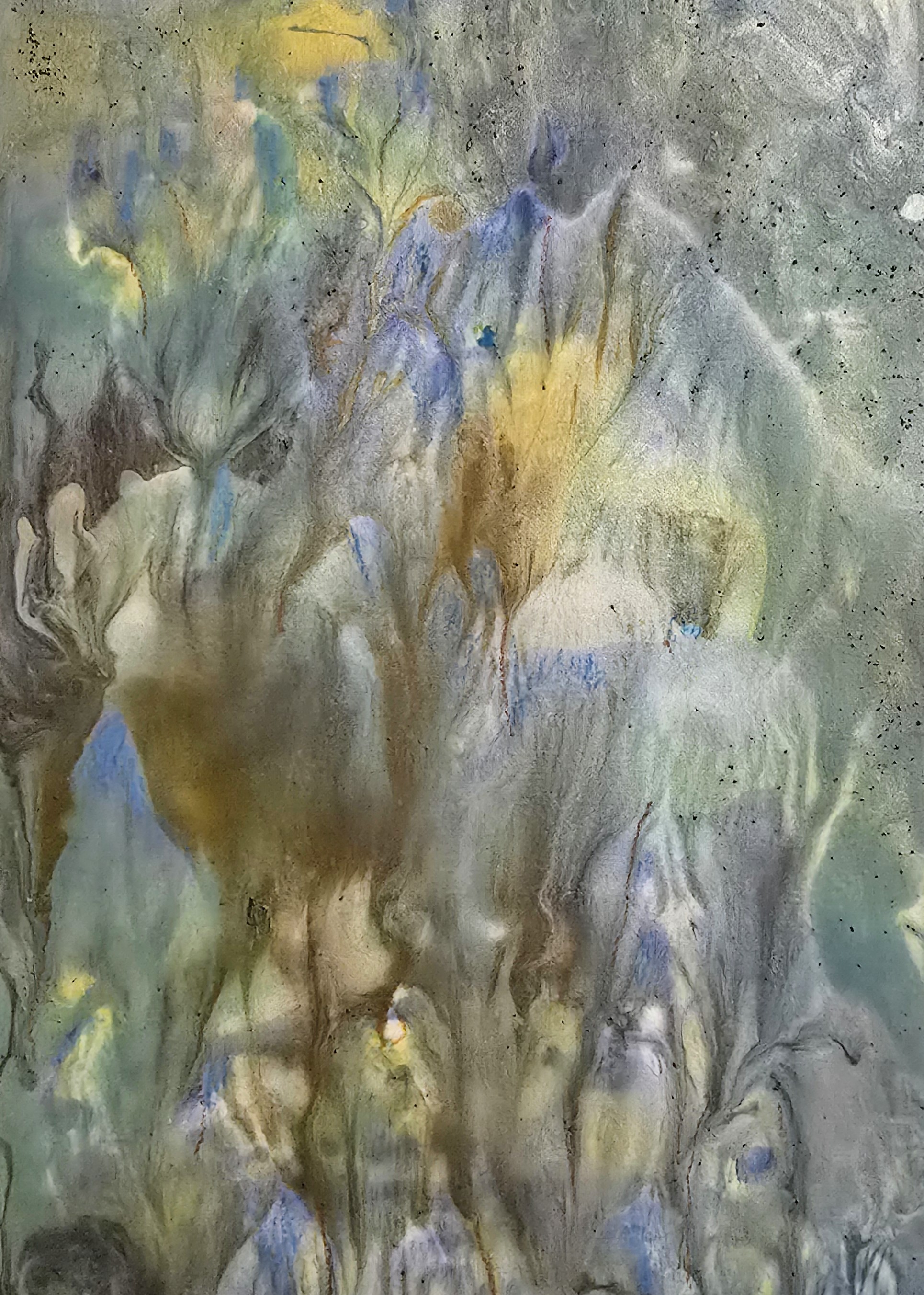 Obraz emanuje delikatnością i jest pełen subtelnych odcieni błękitu, szarości, zieleni i delikatnego brązu. Głębokie, rozmyte plamy barw układają się w abstrakcyjne formy, które przypominają marzenia sennych pejzaży. Wygląda to trochę jak bajkowy las, gdzie drzewa tańczą tańcem kolorów. Nastrój dzieła jest nostalgiczny, może nawet lekko zamyślony, jakby zapraszał do refleksji. Artysta z mistrzowską precyzją wykorzystał techniki rozmycia i nakładania warstw, co daje efekt tajemniczości i nieuchwytności. Te łagodne przejścia i subtelne detale budzą emocje i potrafią zabrać odbiorcę w podróż po własnych wspomnieniach. Dzieciak powiedziałby: to wygląda jak zaczarowana dżungla. Te przypadkowe plamy przypominają mi chwilami rozmyte wspomnienia, a innymi mroczne zakamarki wyobraźni. Wow! Styl obrazu jest jednocześnie dynamiczny i spokojny, co jest naprawdę cool. Różnorodność tych kolorów i kształtów wprowadza w stan zadumy i zachwytu. Może to być też okno do innej rzeczywistości, gdzie czas płynie inaczej. Obraz jest jak szept świata, który tylko my możemy usłyszeć.
